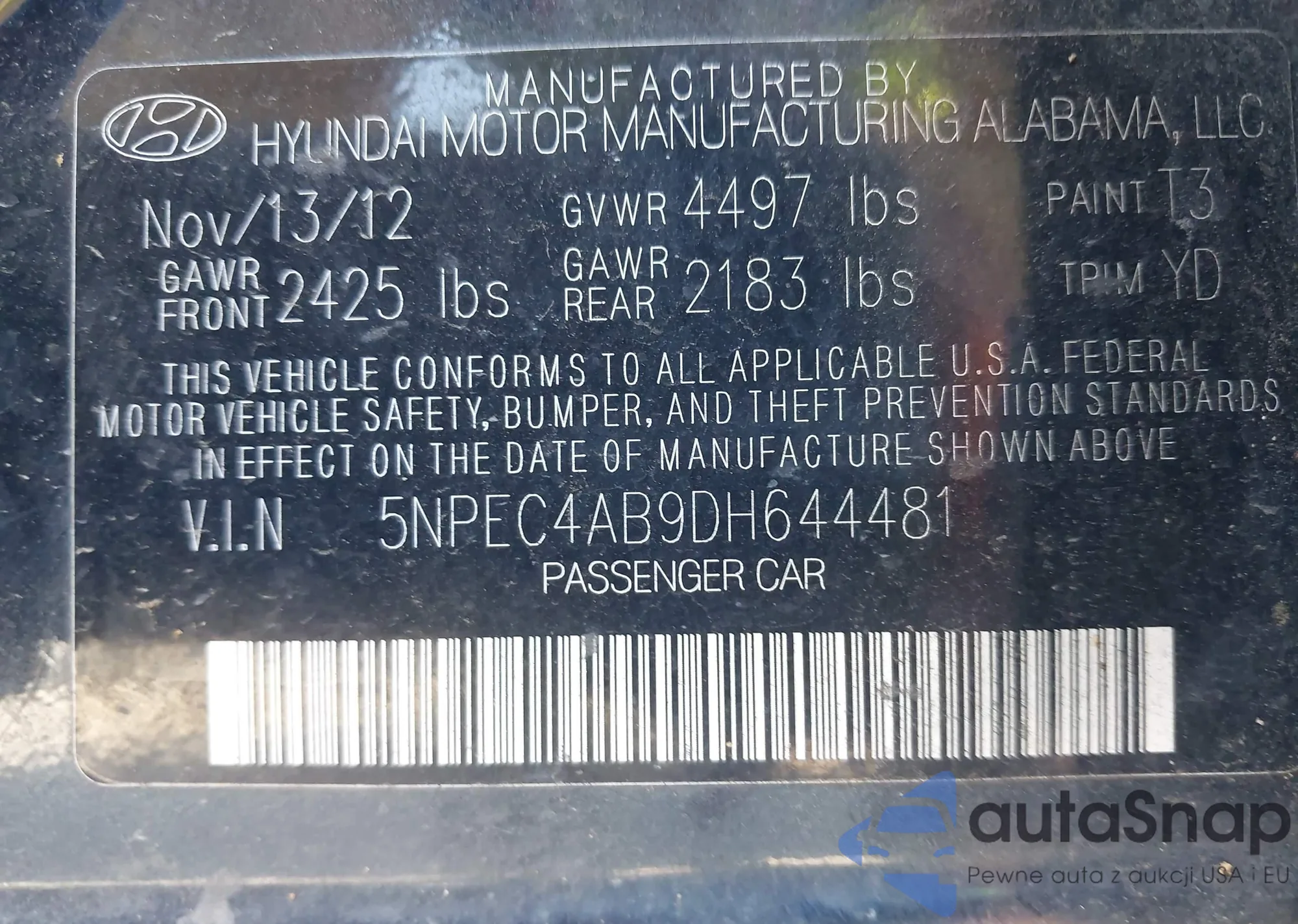 • VIN: 5NPEC4AB9DH644481