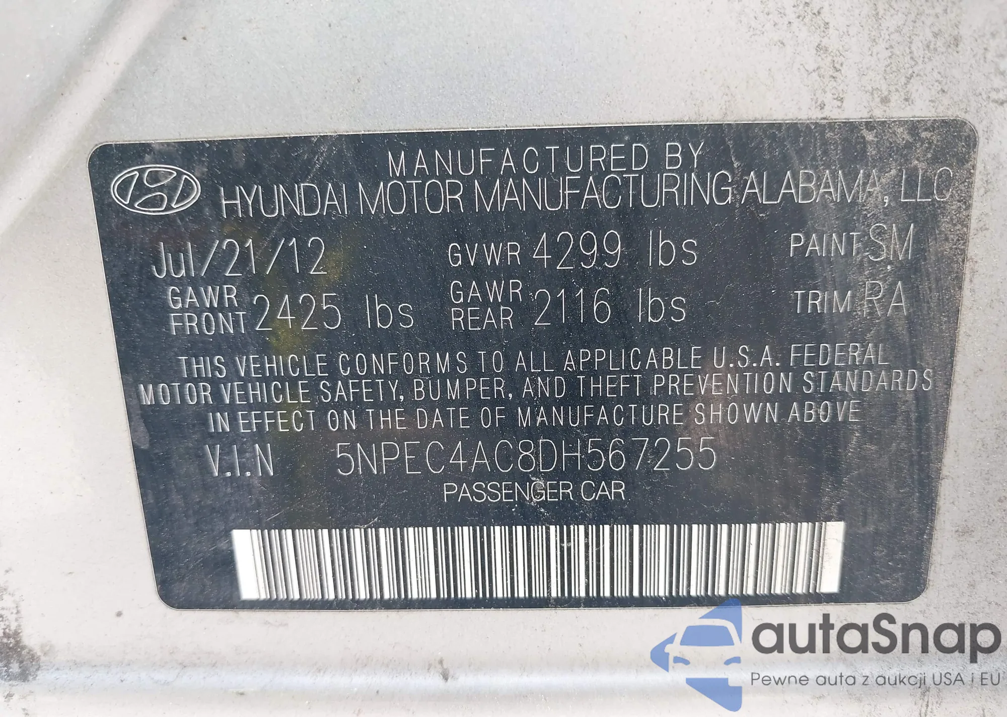 VIN: 5NPEC4AC8DH567255