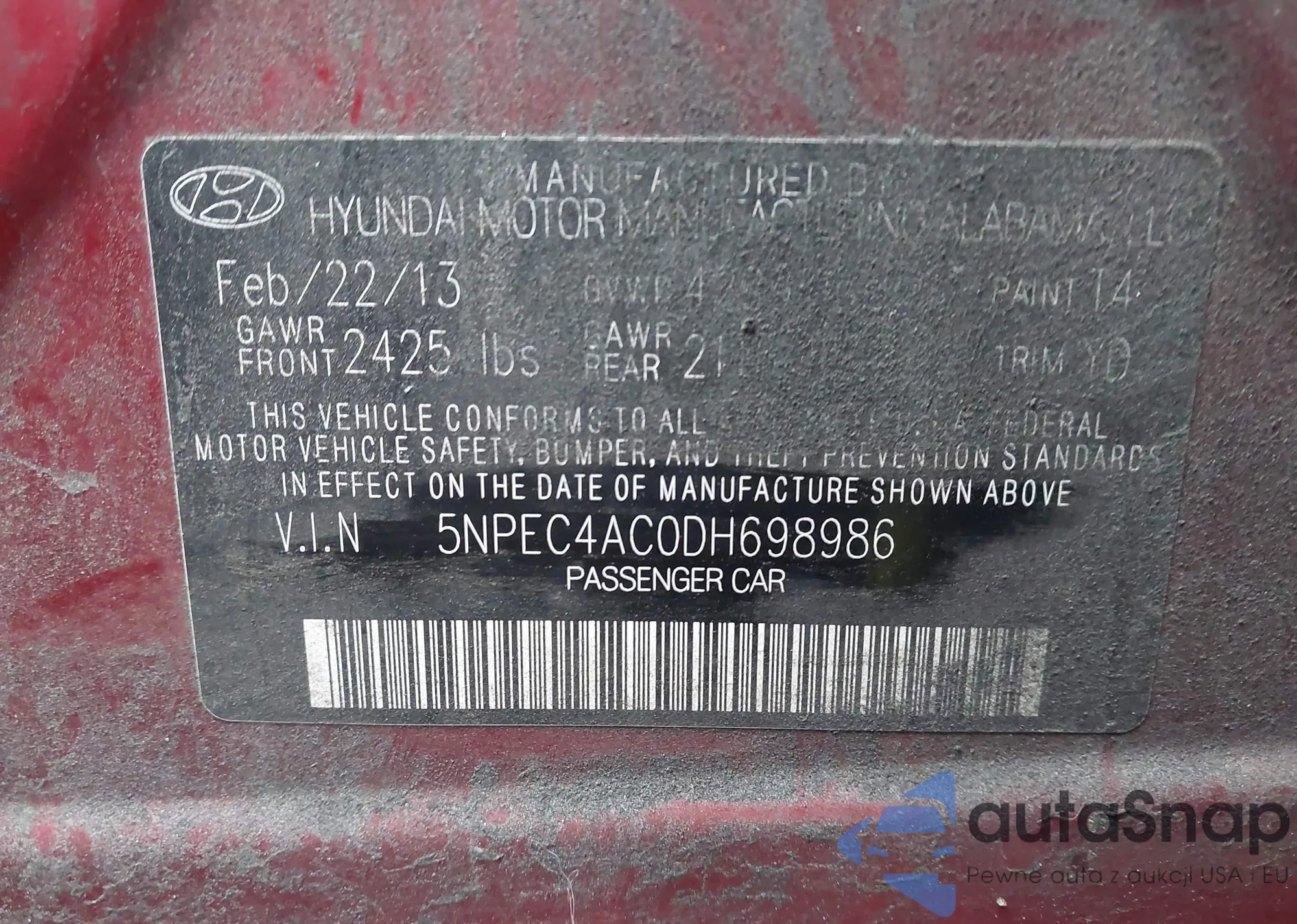 VIN: 5NPEC4AC0DH698986