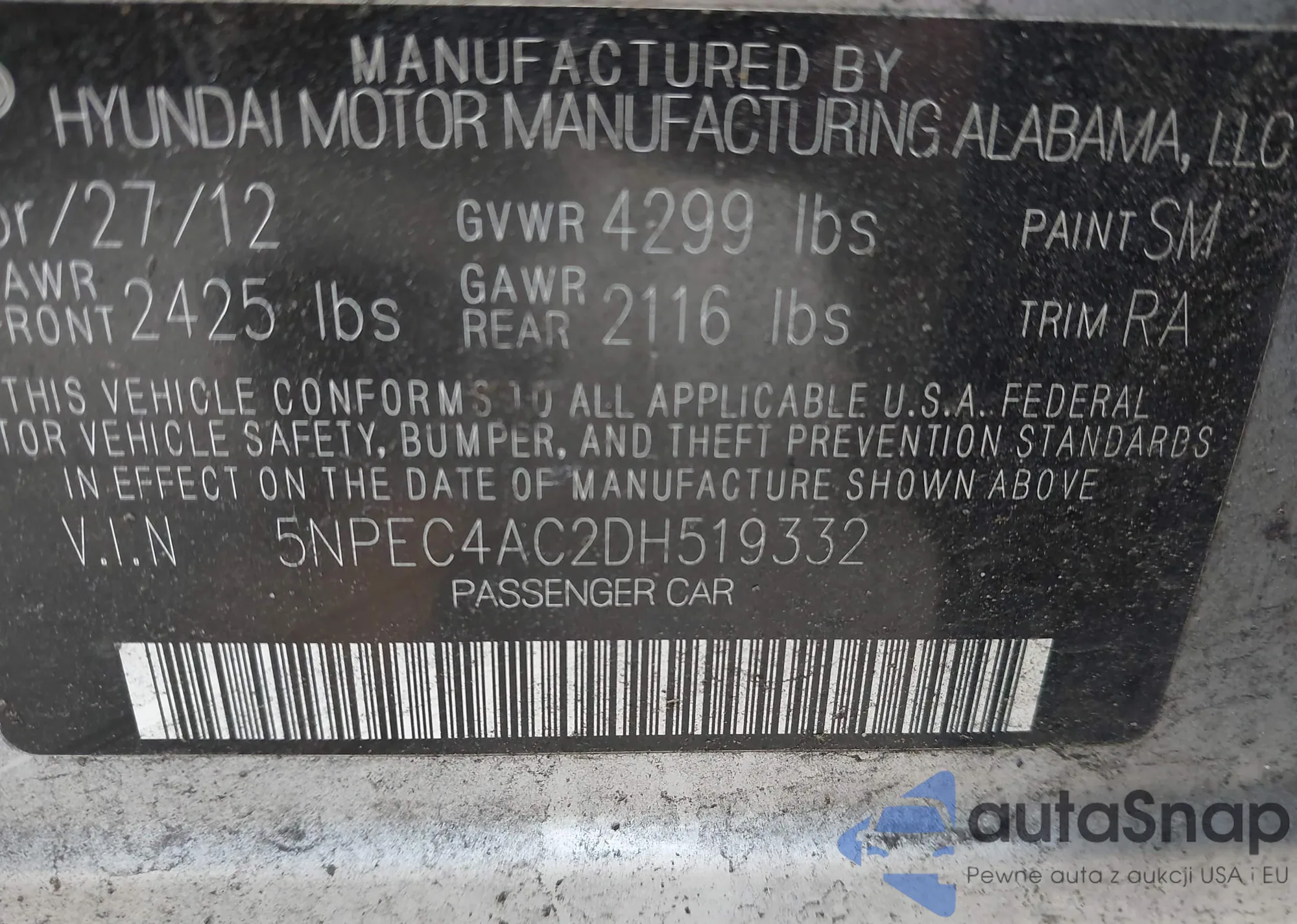 VIN: 5NPEC4AC2DH519332