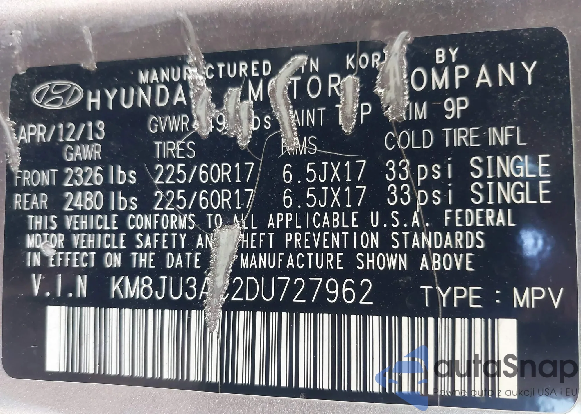 VIN: KM8JU3AC2DU727962