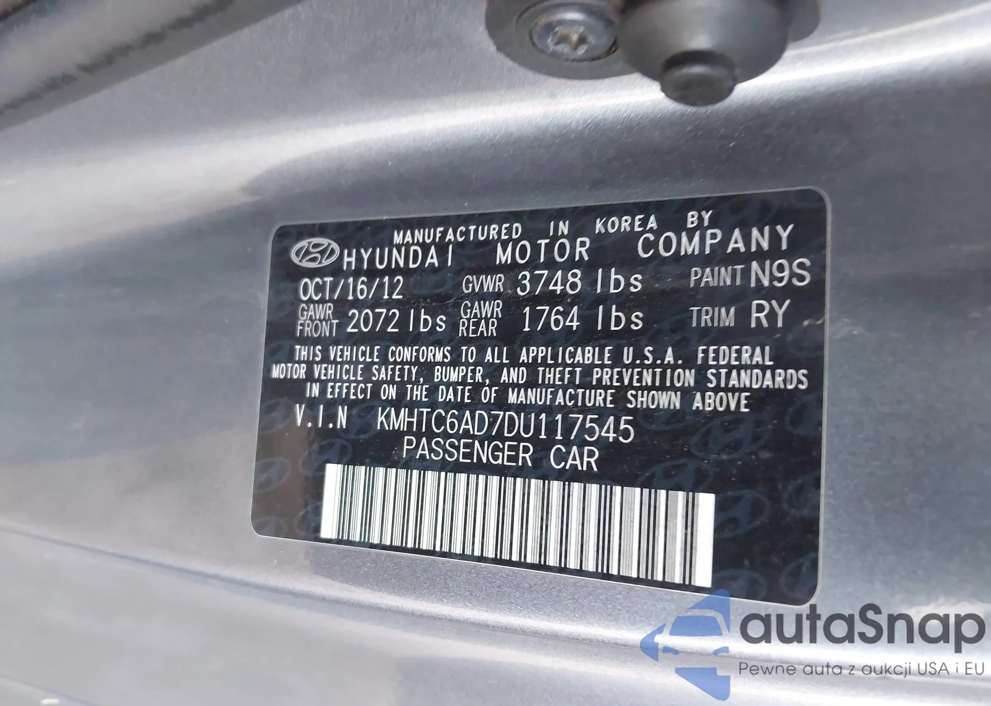 • VIN: KMHTC6AD7DU117545
