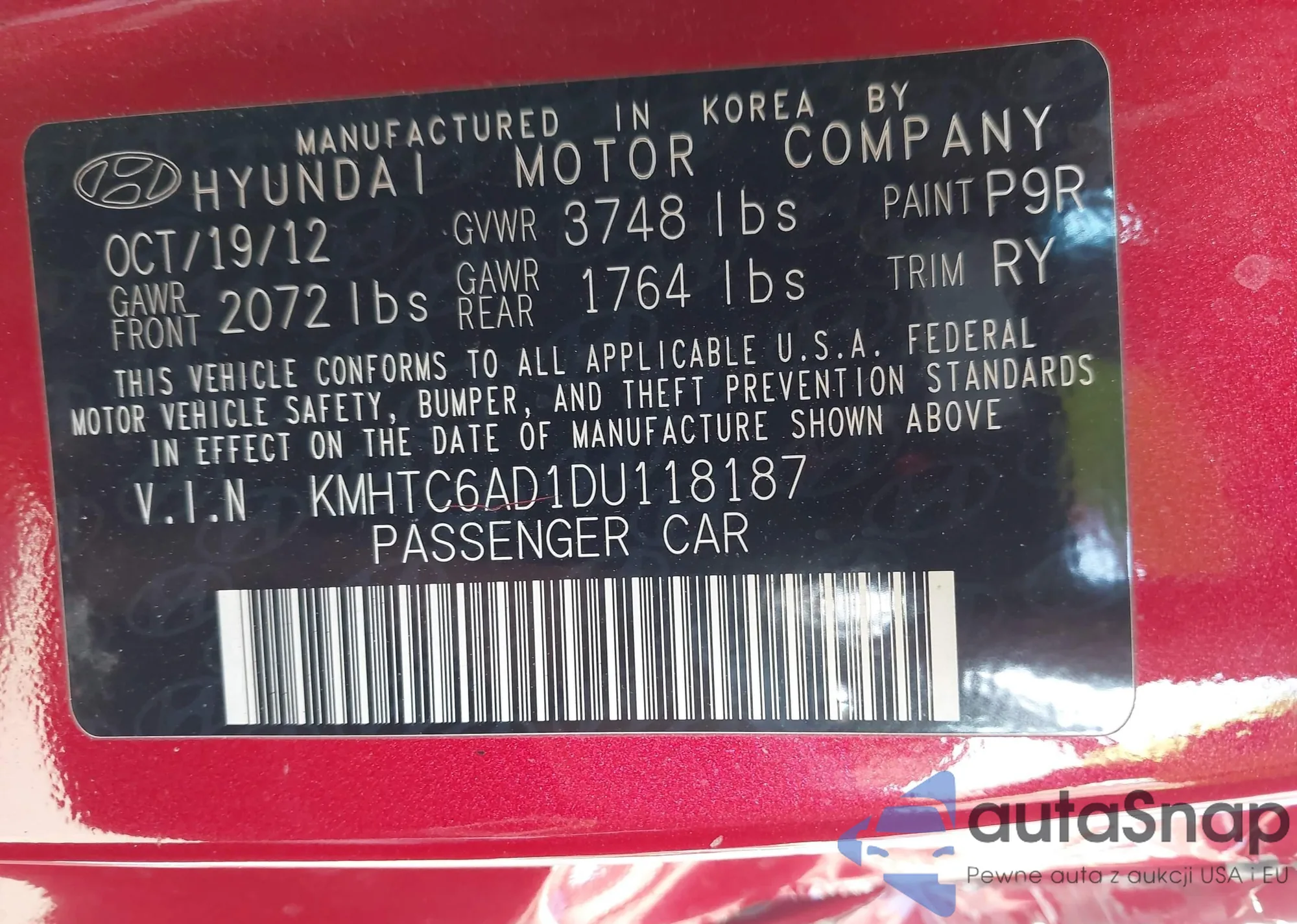 Samochód Hyundai Veloster 2013 (VIN KMHTC6AD1DU118187) nie był wcześniej licytowany. Dokumenty są czyste, przebieg odpowiada lub jest niższy niż średnia rynku. Sprzedaje go firma ubezpieczeniowa – polecamy zakup. Dostawa do portu zajmie ok. 6–8 tygodni.