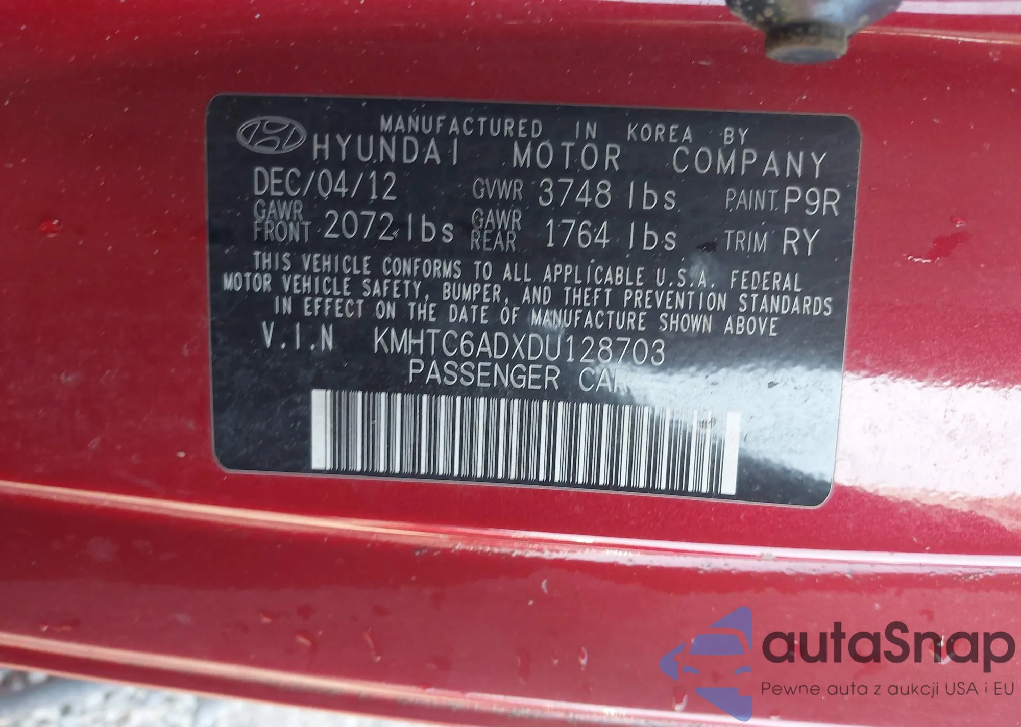 VIN: KMHTC6ADXDU128703