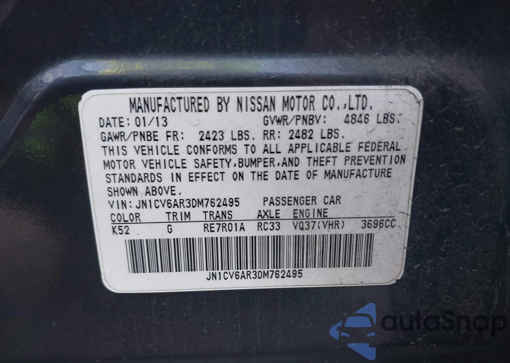 VIN: JN1CV6AR3DM762495