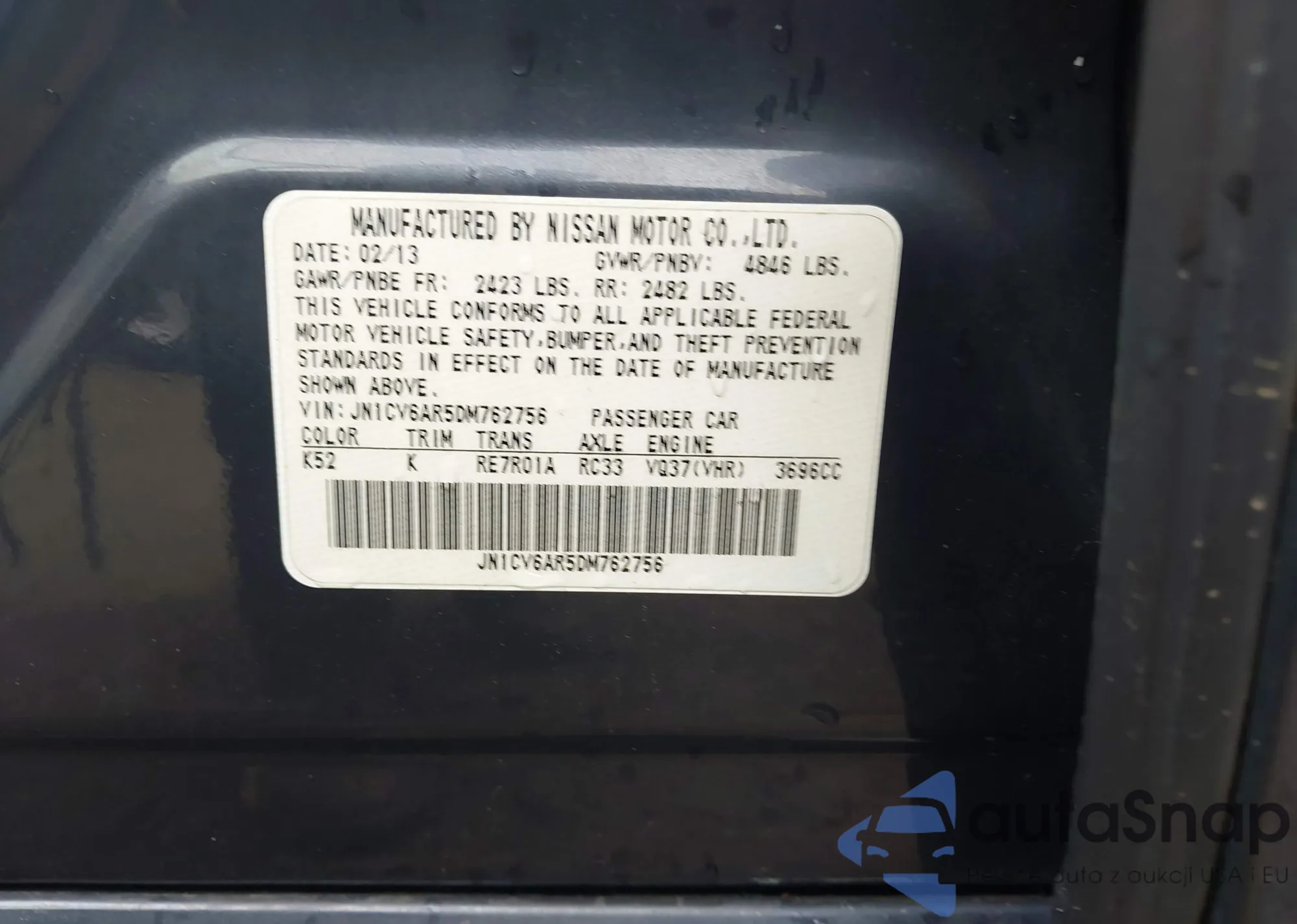 Samochód Infiniti G 2013 (VIN JN1CV6AR5DM762756) był już licytowany 1 razy i/lub sprzedaje go niezweryfikowany sprzedawca. Zalecamy raport Carfax i potwierdzenie możliwości rejestracji pojazdu przed zakupem.