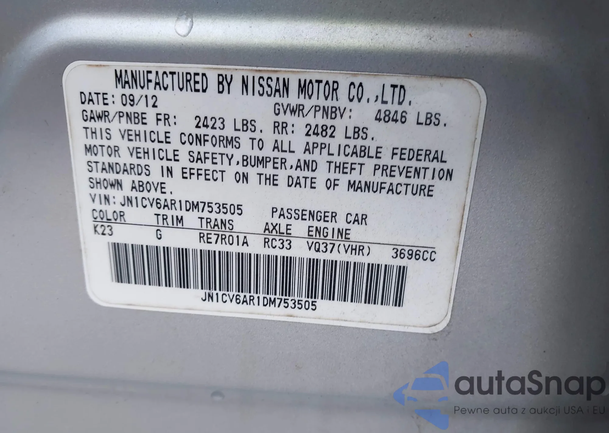 VIN: JN1CV6AR1DM753505