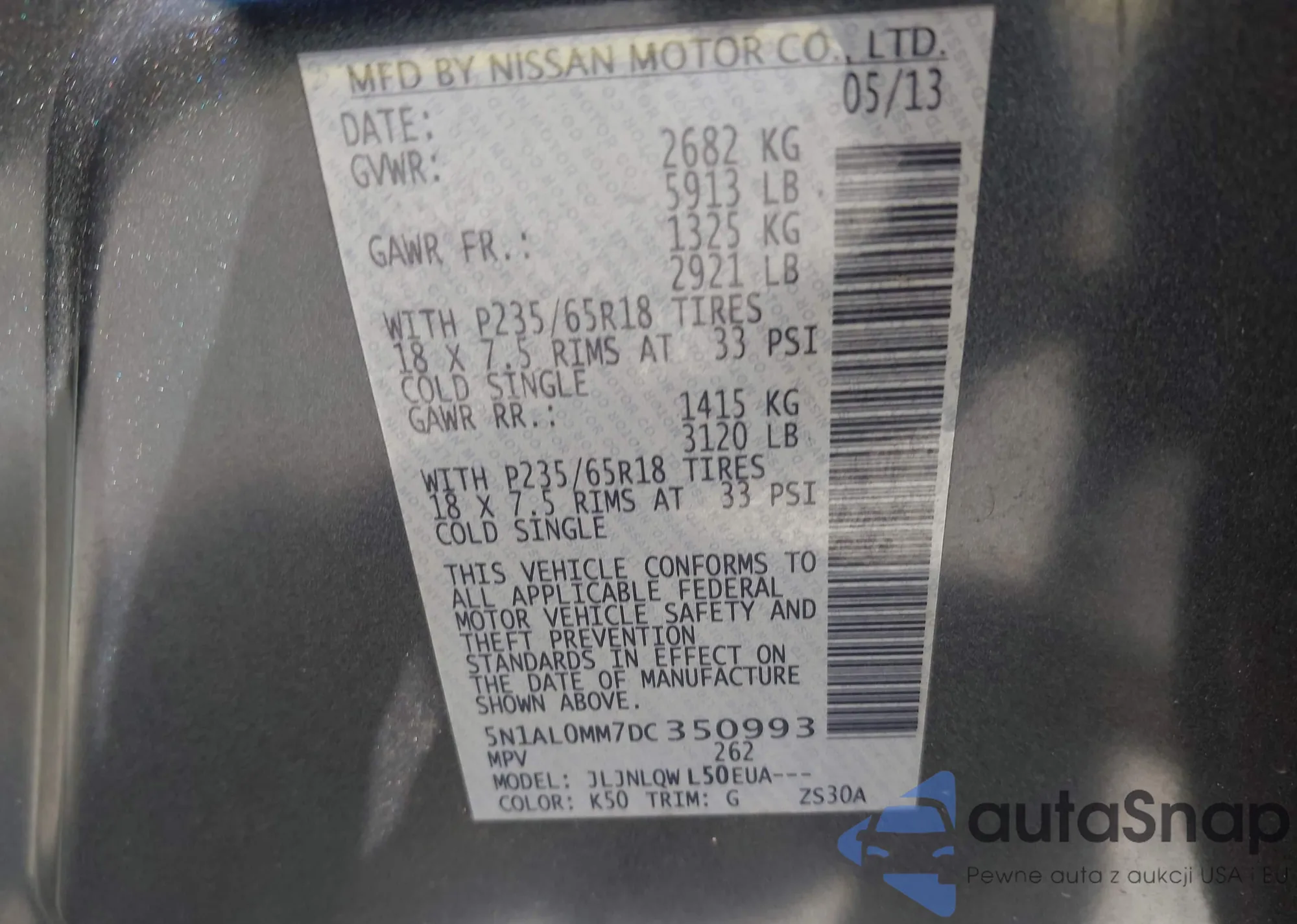 VIN: 5N1AL0MM7DC350993