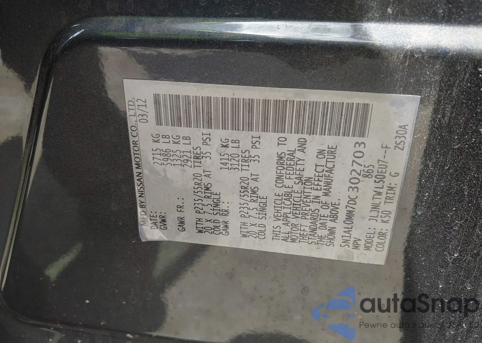 VIN: 5N1AL0MM7DC302703