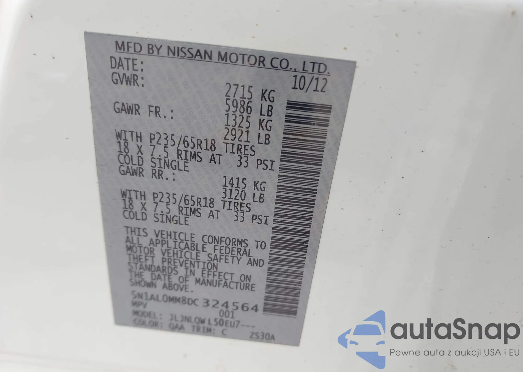 VIN: 5N1AL0MM8DC324564