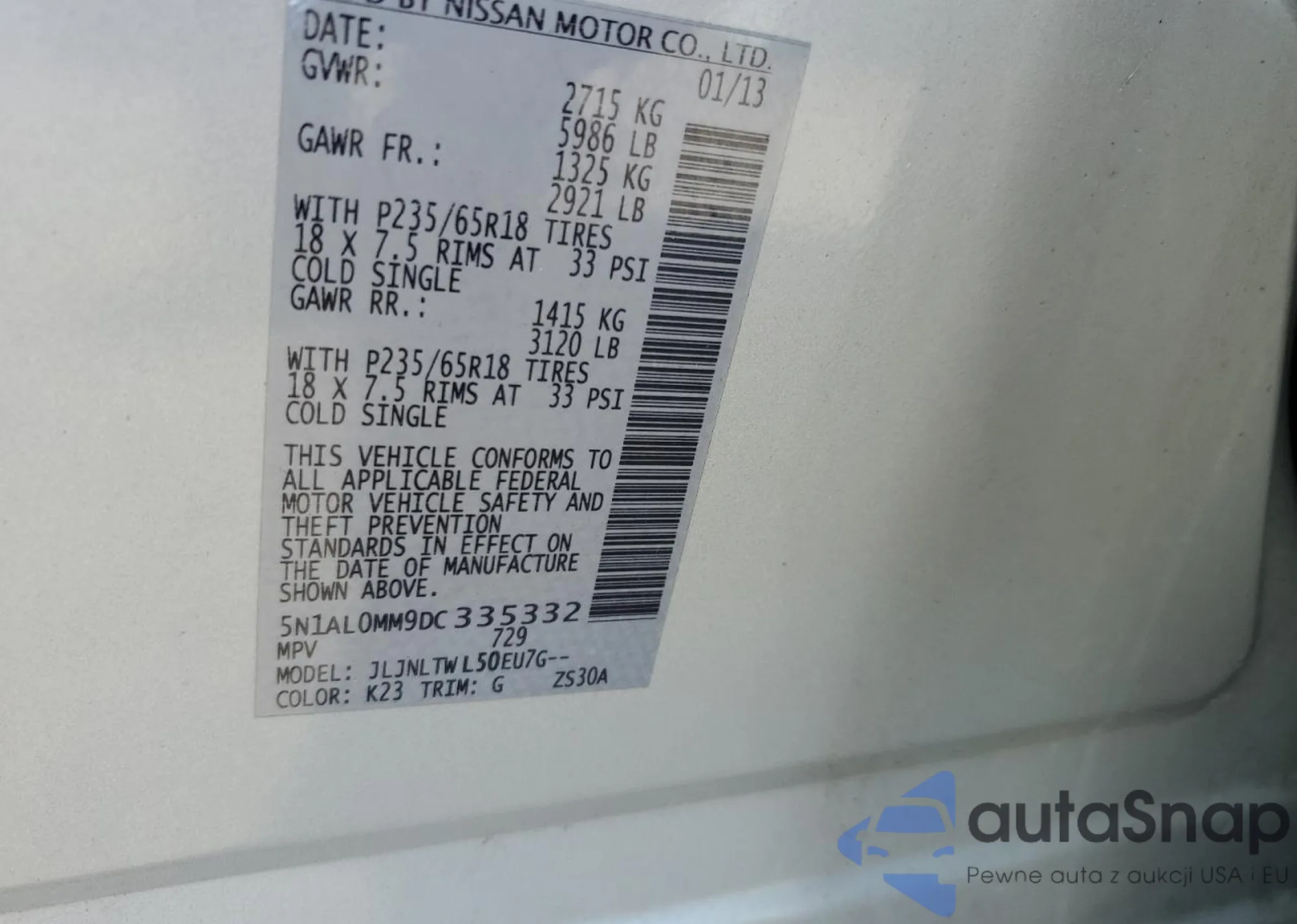 VIN: 5N1AL0MM9DC335332