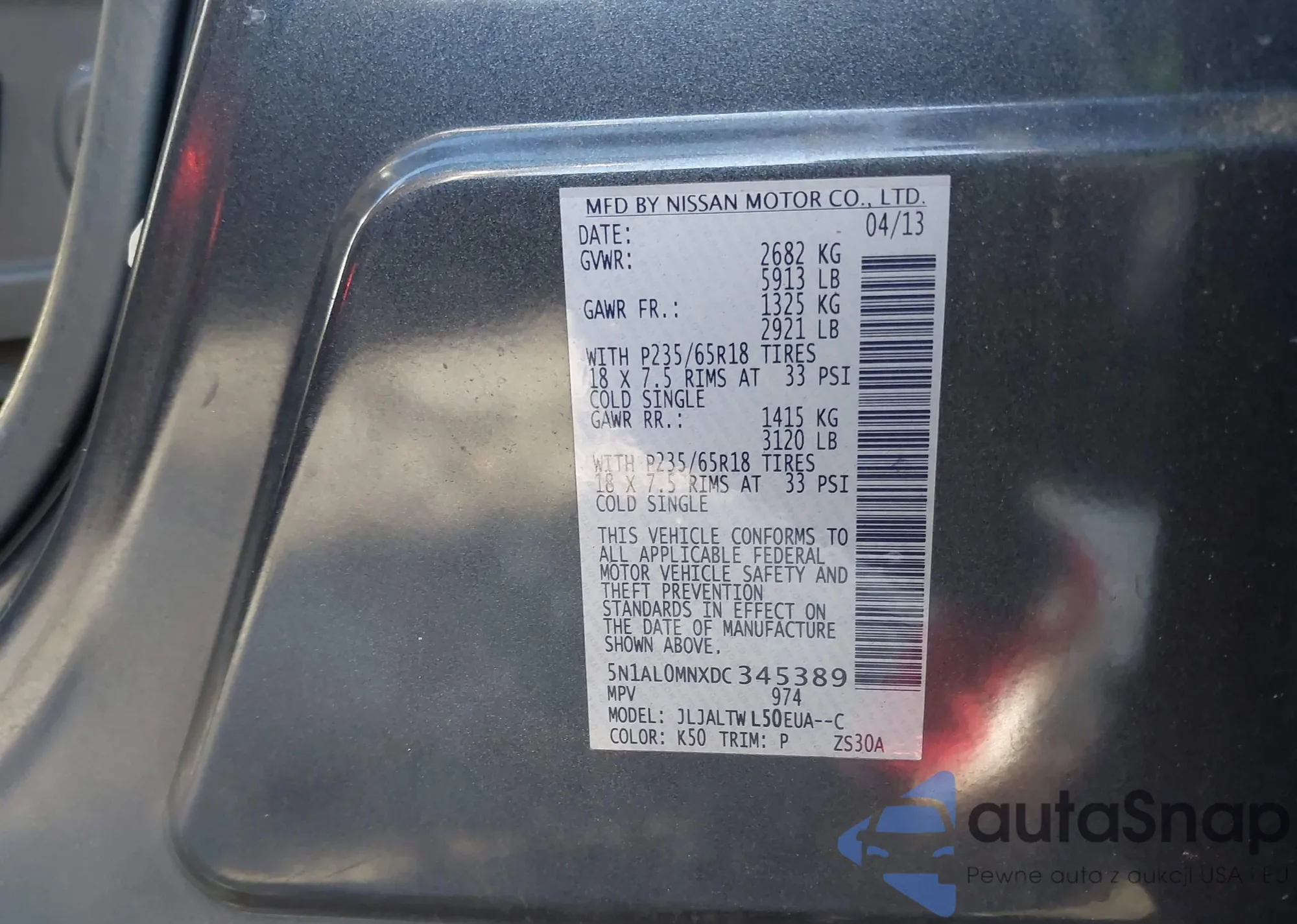 VIN: 5N1AL0MNXDC345389
