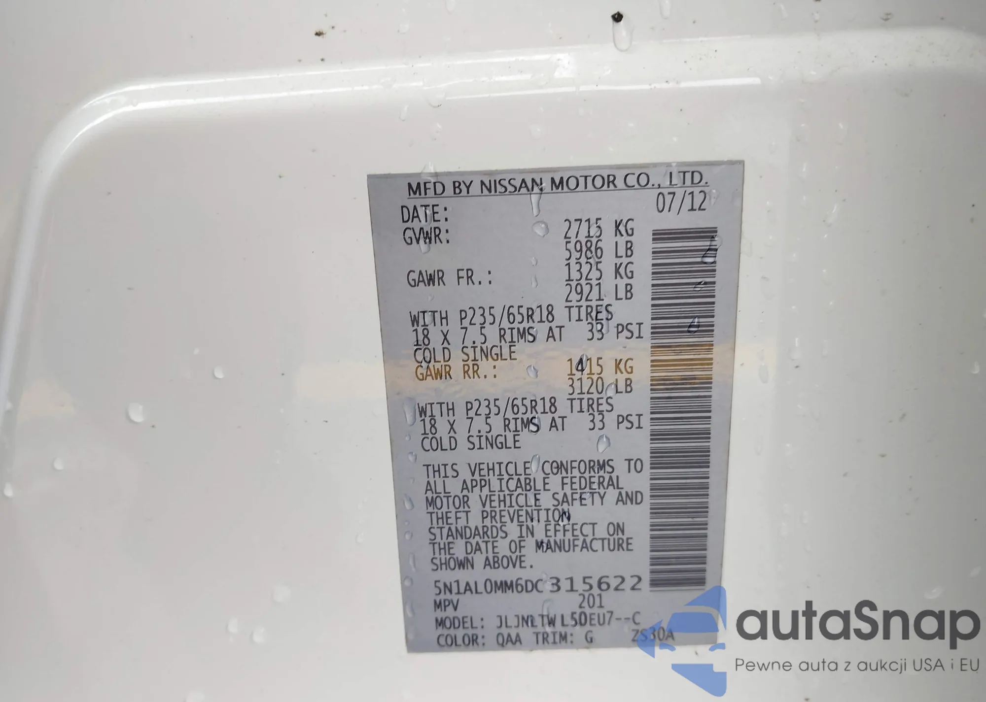 VIN: 5N1AL0MM6DC315622