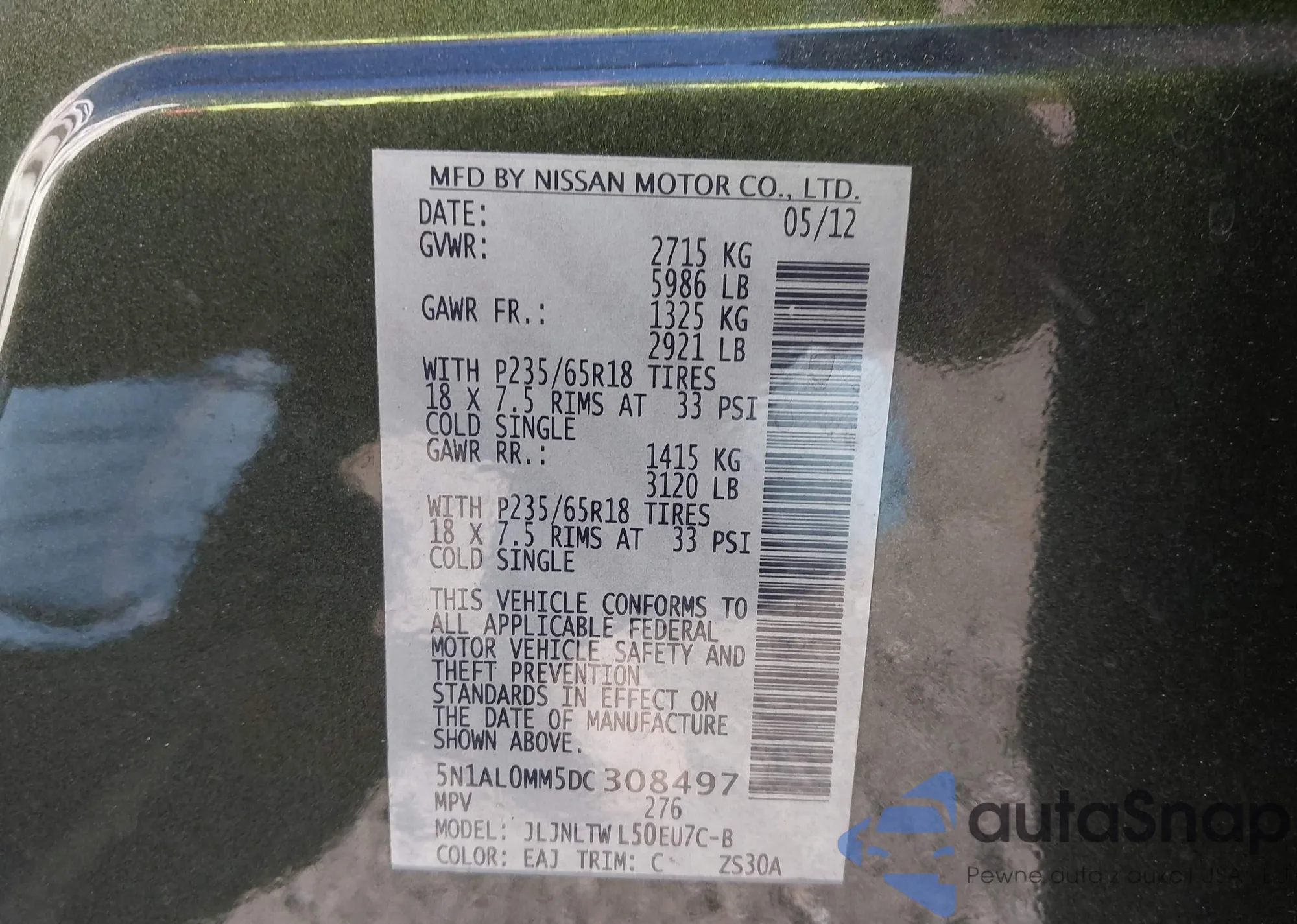 VIN: 5N1AL0MM5DC308497