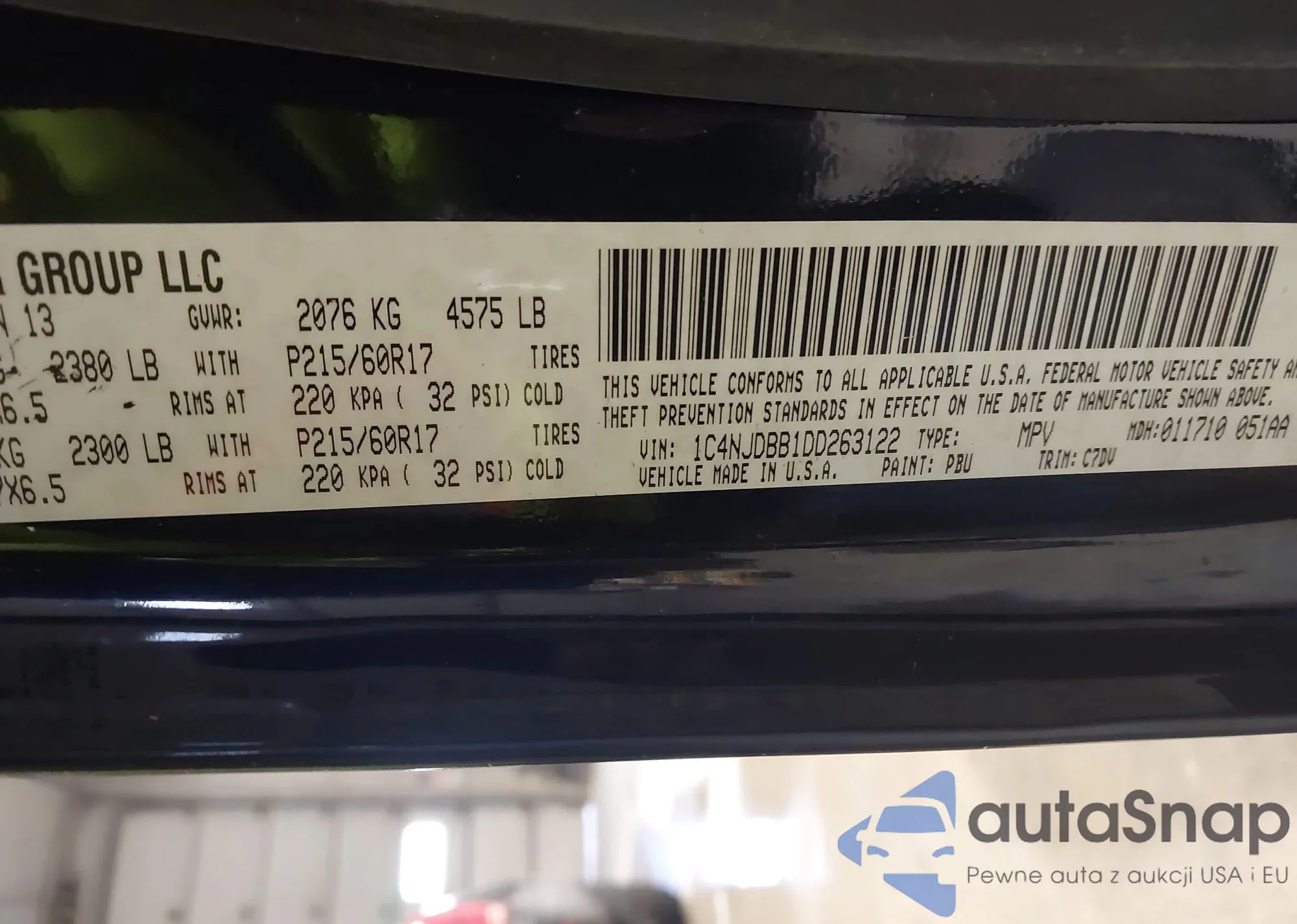 Samochód Jeep Compass 2013 (VIN 1C4NJDBB1DD263122) ma dokumenty uniemożliwiające rejestrację. Mogą pojawić się trudności przy eksporcie i rejestracji. Skontaktuj się z ekspertami AutaSnap w celu znalezienia alternatywy.