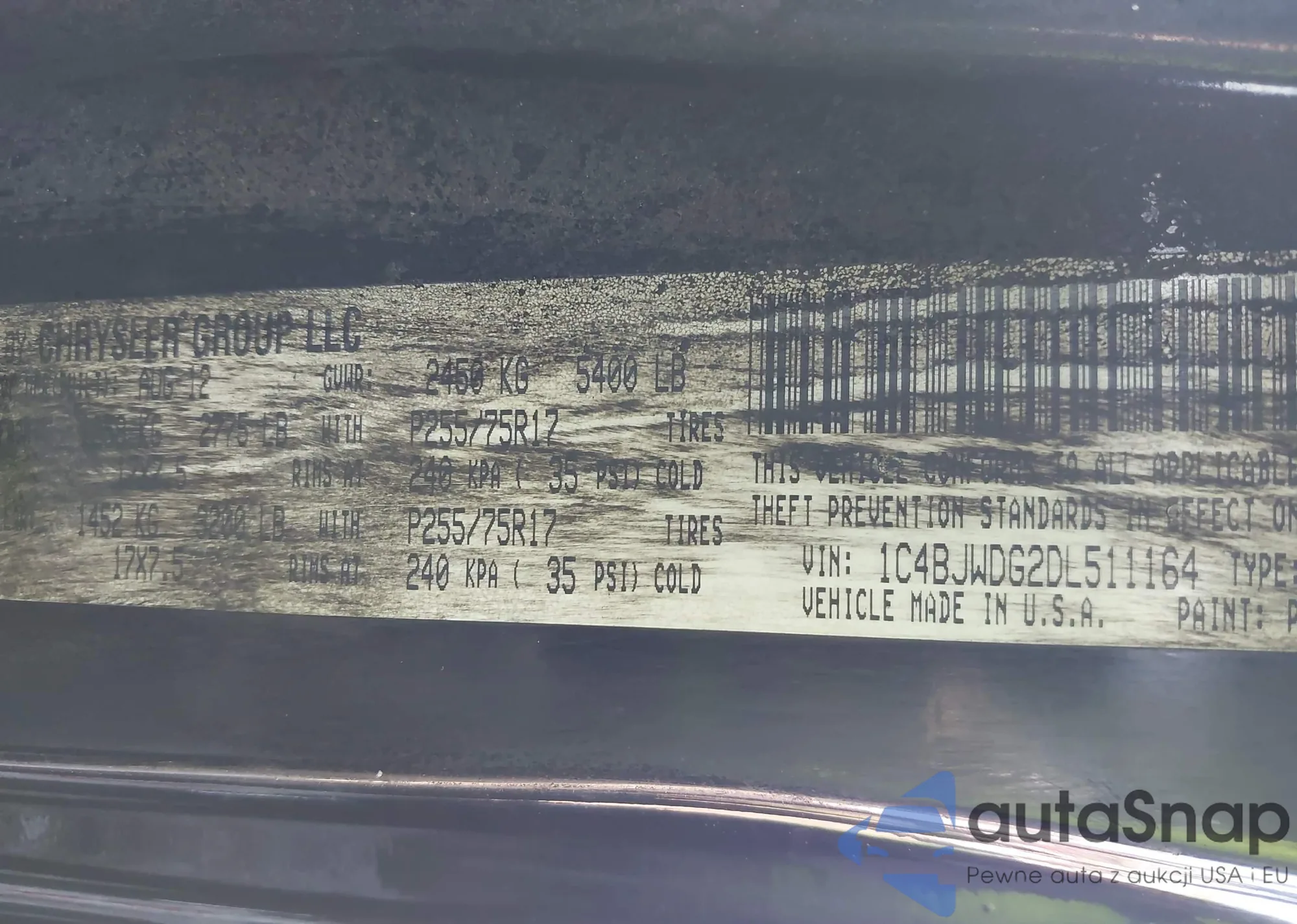 • VIN: 1C4BJWDG2DL511164