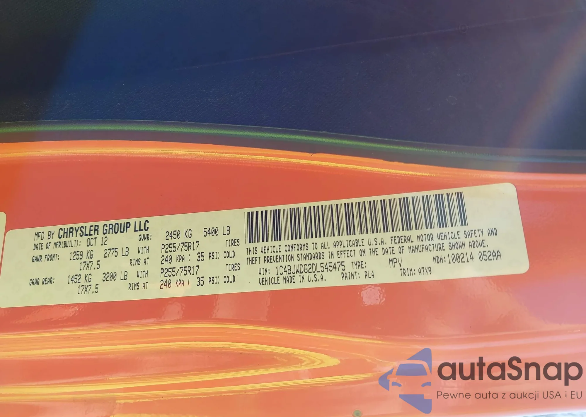 VIN: 1C4BJWDG2DL545475