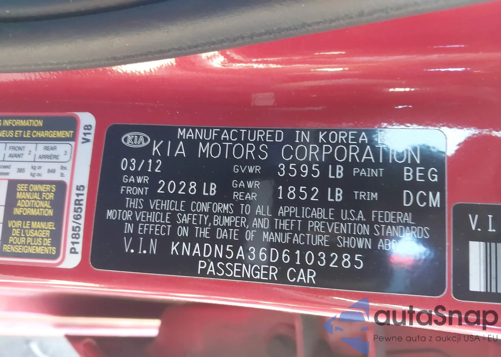 VIN: KNADN5A36D6103285