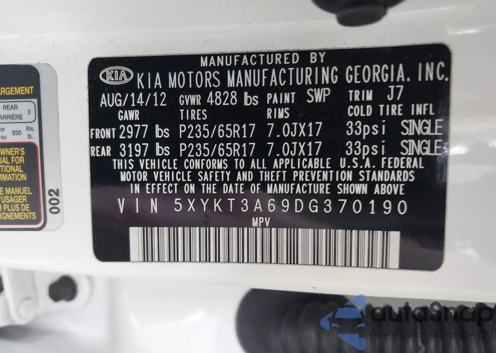 VIN: 5XYKT3A69DG370190