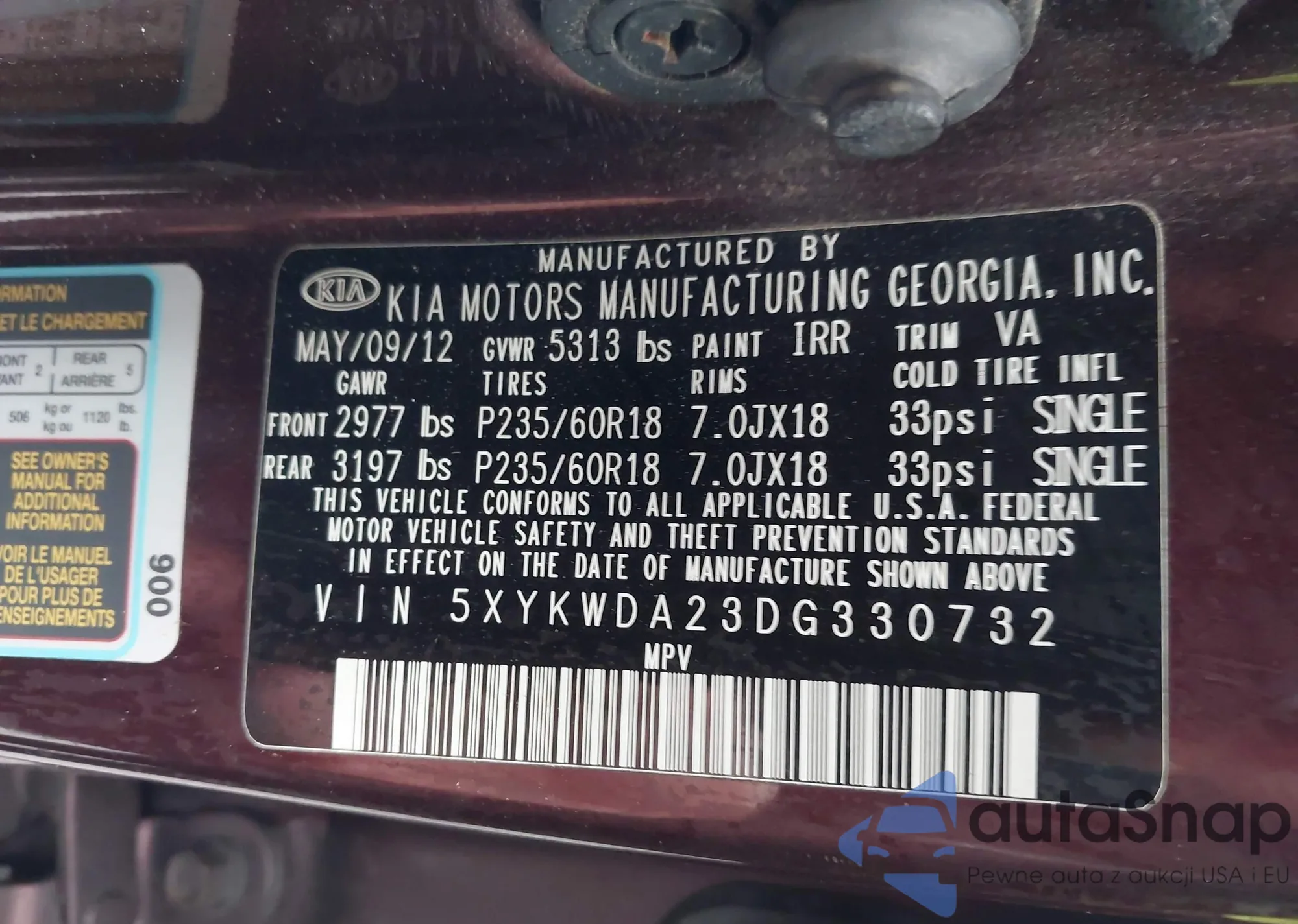 Samochód Kia Sorento 2013 (VIN 5XYKWDA23DG330732) nie był wcześniej licytowany. Dokumenty są czyste, przebieg odpowiada lub jest niższy niż średnia rynku. Sprzedaje go firma ubezpieczeniowa – polecamy zakup. Dostawa do portu zajmie ok. 6–8 tygodni.