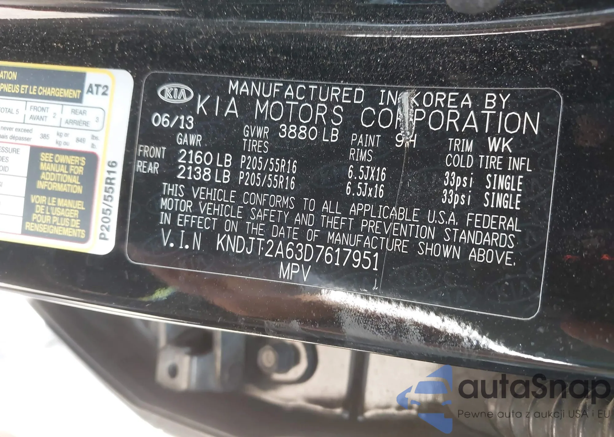 Samochód Kia Soul 2013 (VIN KNDJT2A63D7617951) ma dokumenty uniemożliwiające rejestrację. Mogą pojawić się trudności przy eksporcie i rejestracji. Skontaktuj się z ekspertami AutaSnap w celu znalezienia alternatywy.