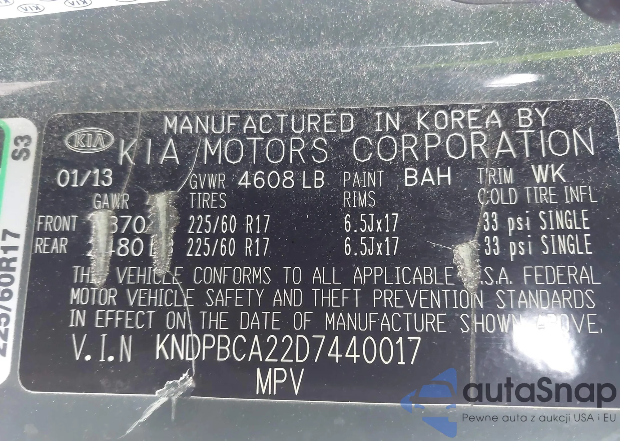 VIN: KNDPBCA22D7440017