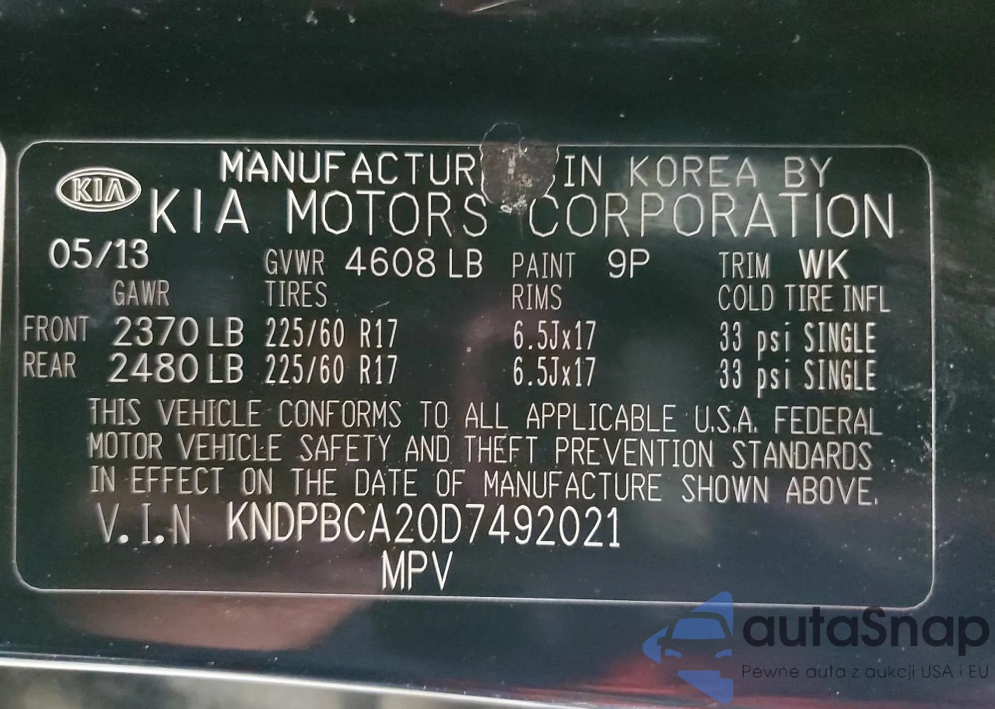 VIN: KNDPBCA20D7492021