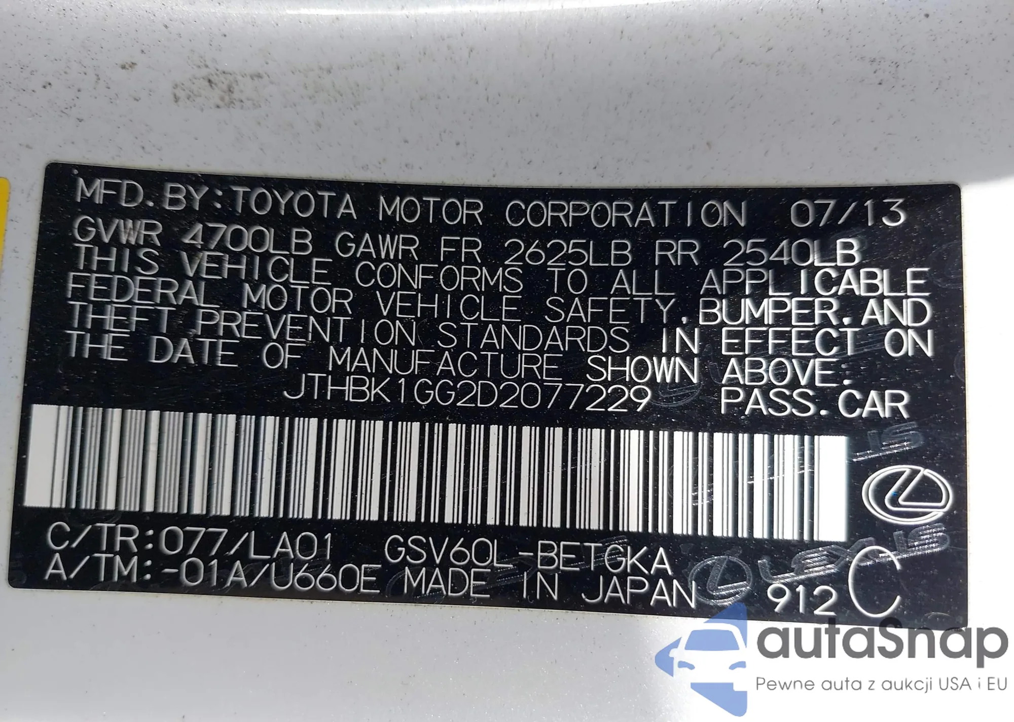 Lexus ES 2013 – Historia pojazdu (sprzedany na IAAI)