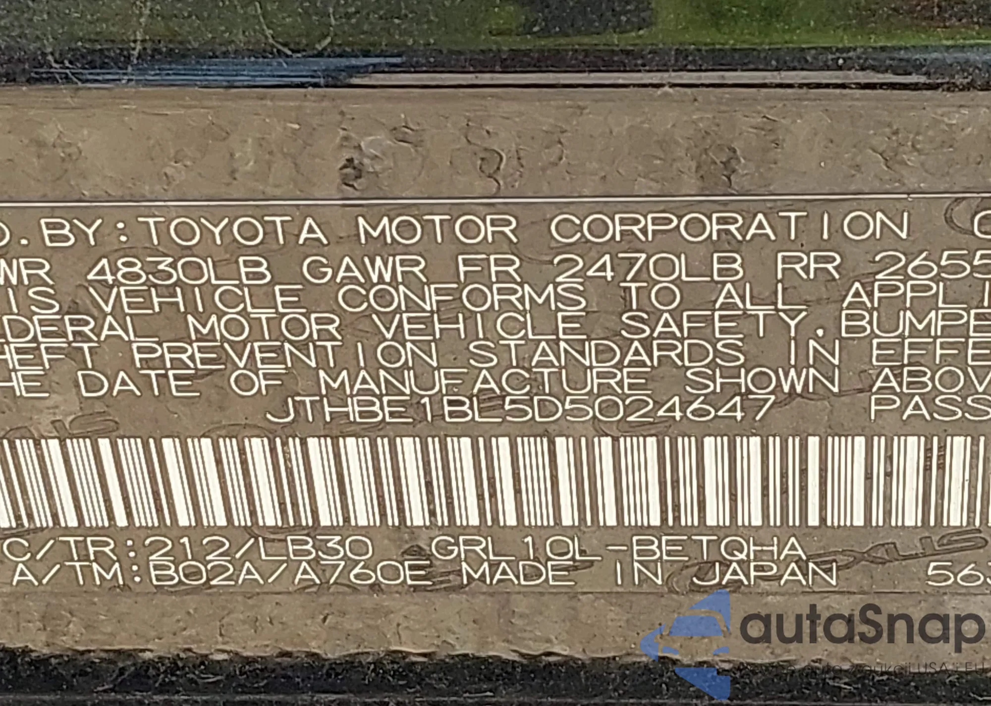 VIN: JTHBE1BL5D5024647
