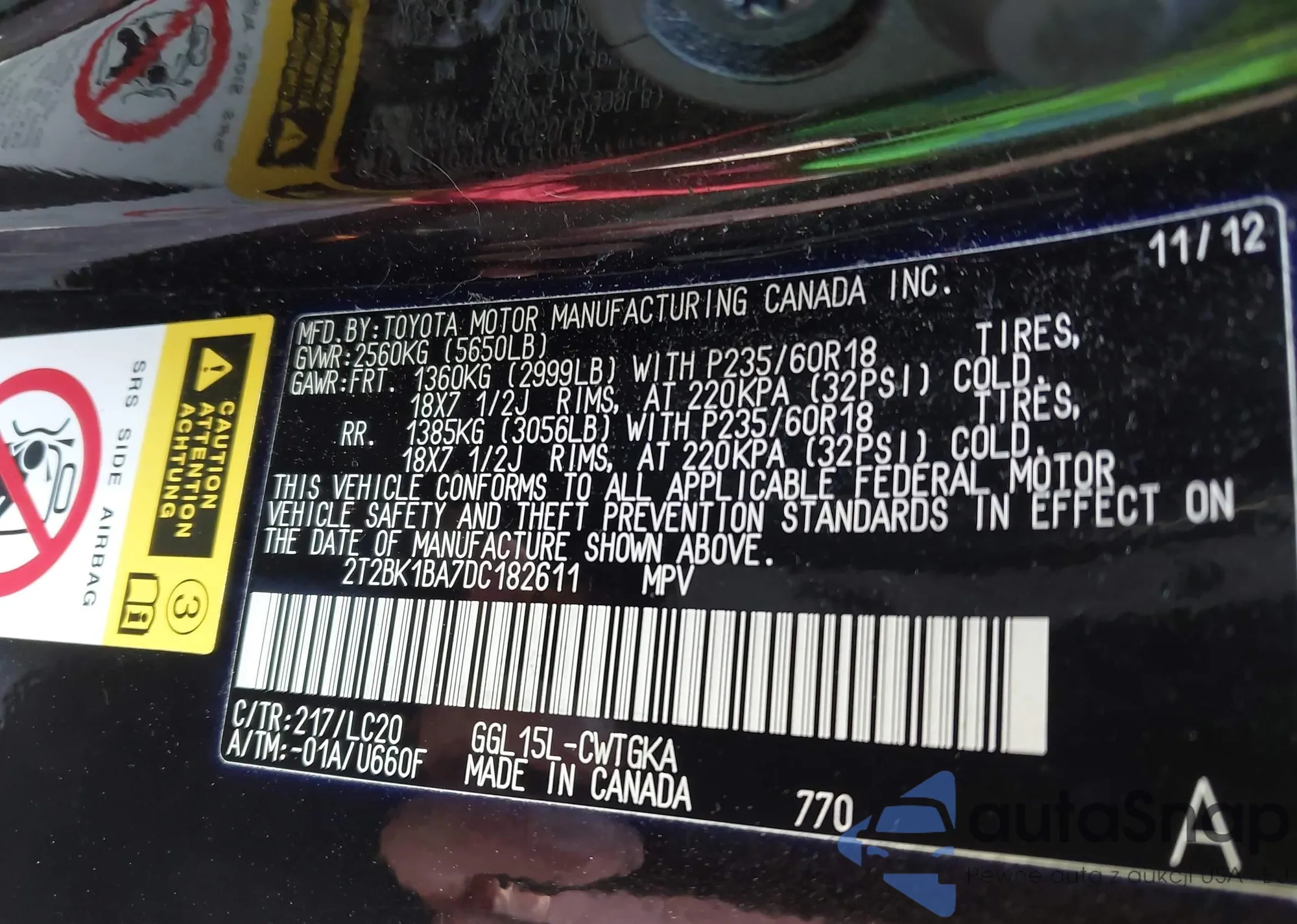 VIN: 2T2BK1BA7DC182611