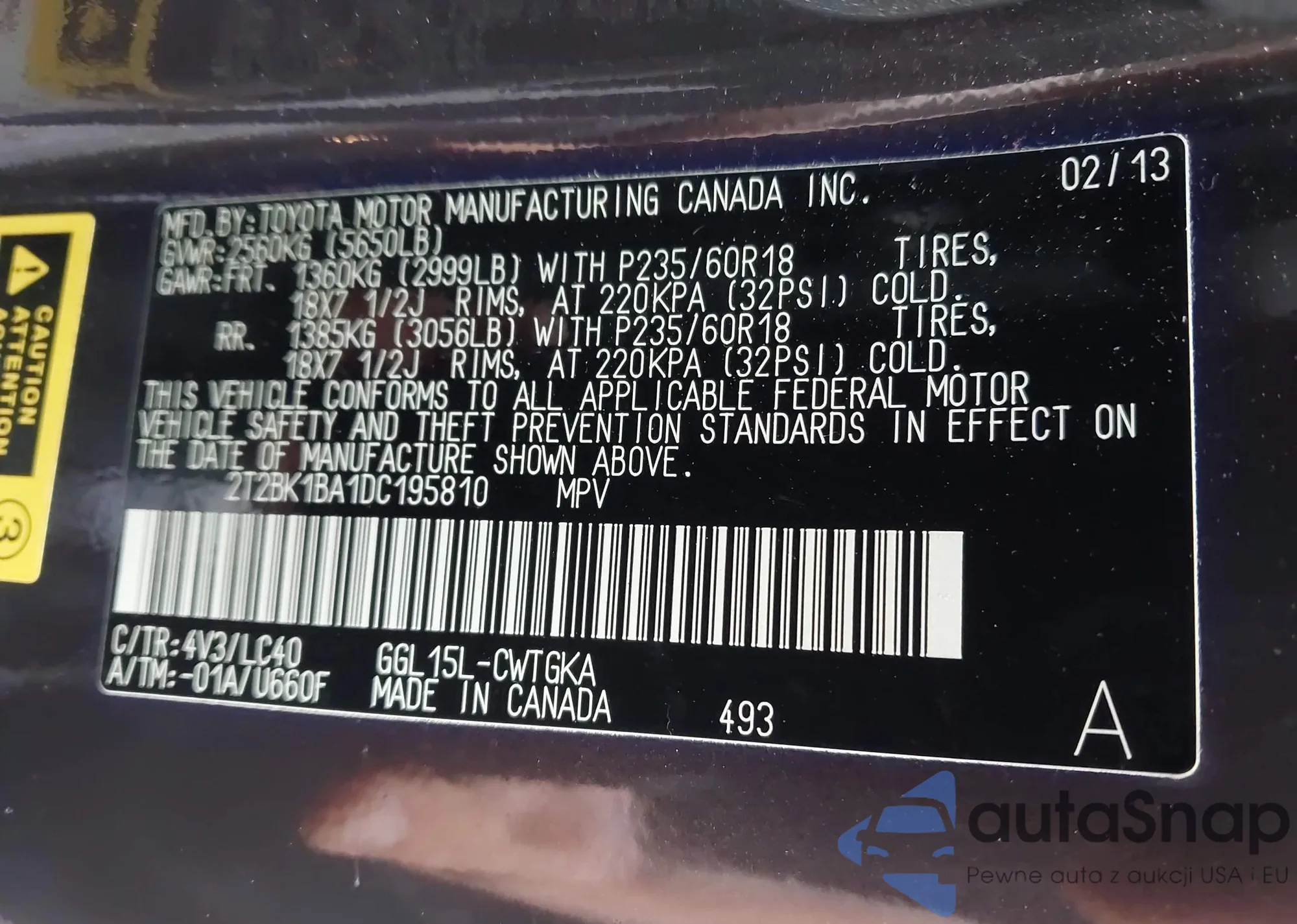 VIN: 2T2BK1BA1DC195810