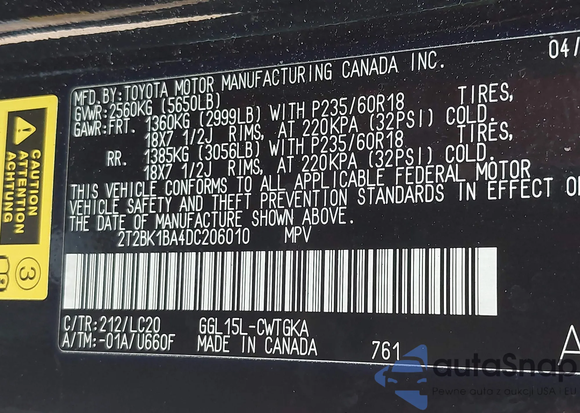 VIN: 2T2BK1BA4DC206010