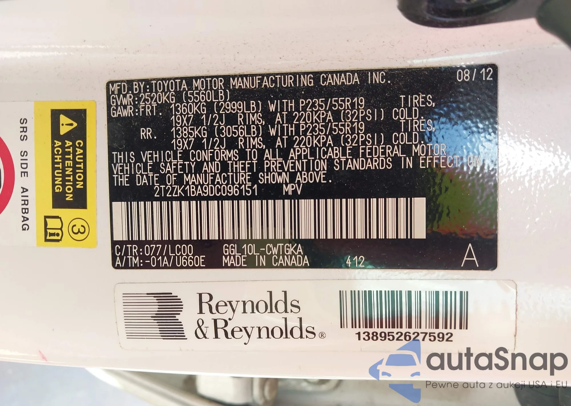 VIN: 2T2ZK1BA9DC096151