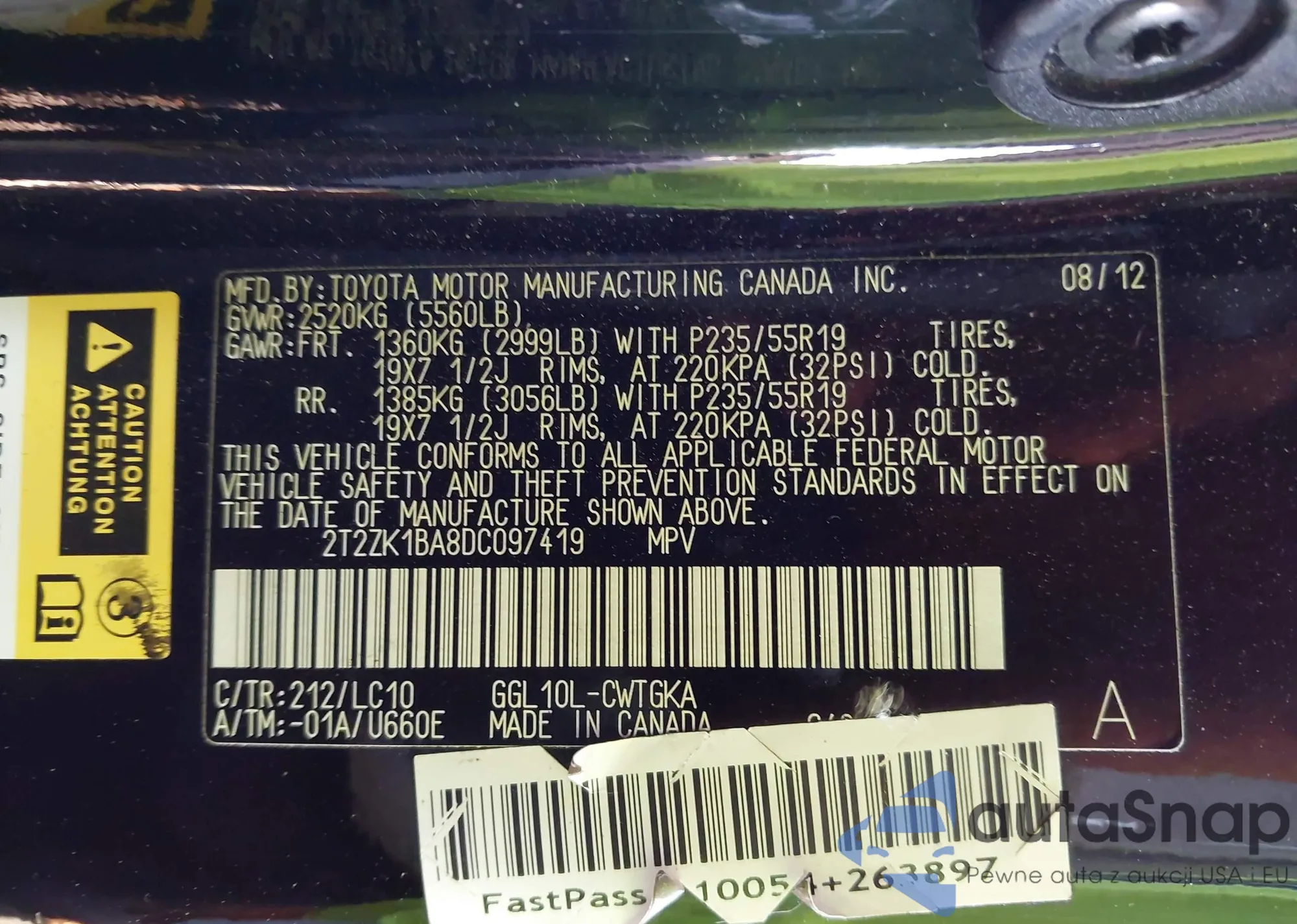 VIN: 2T2ZK1BA8DC097419