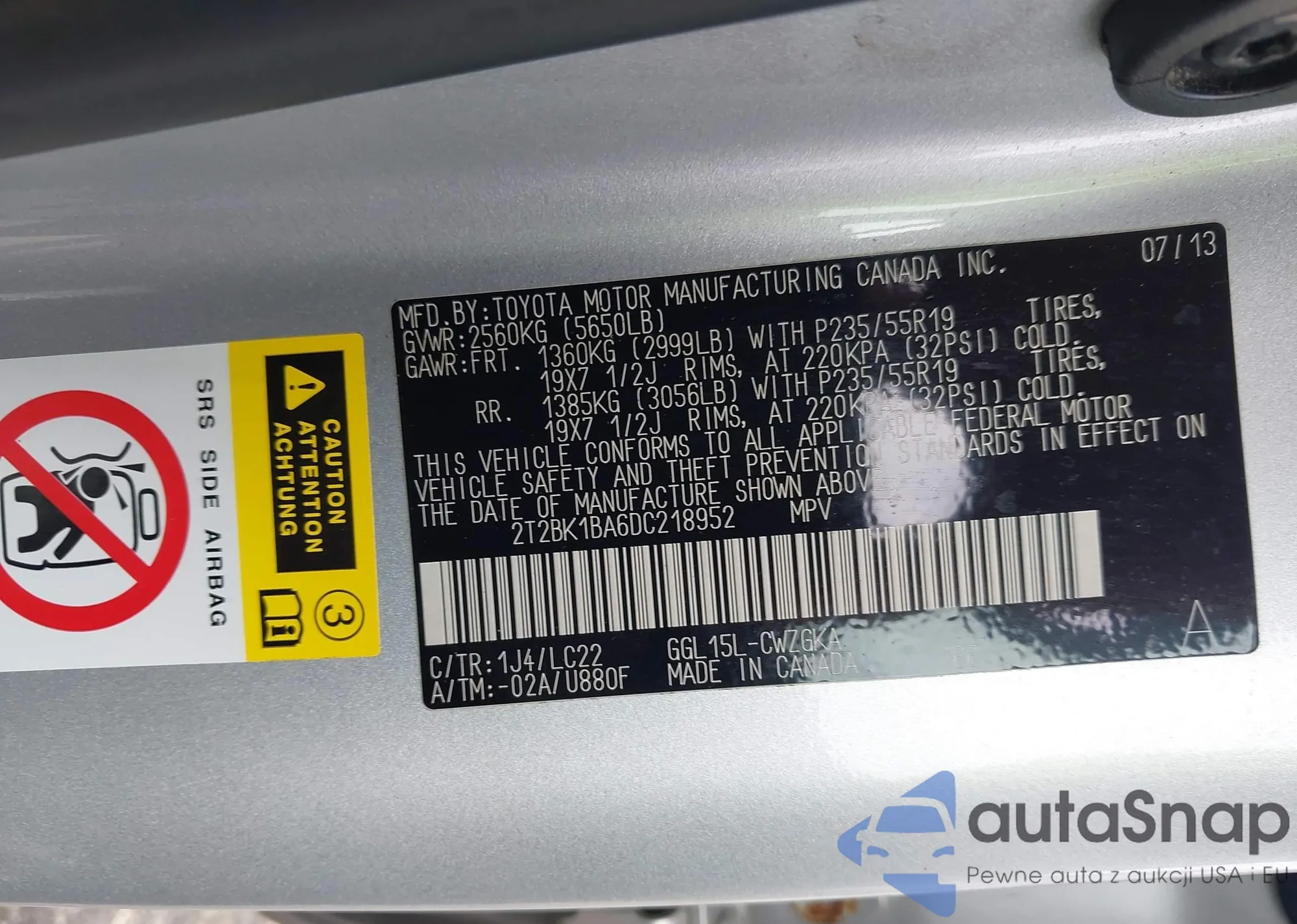 VIN: 2T2BK1BA6DC218952