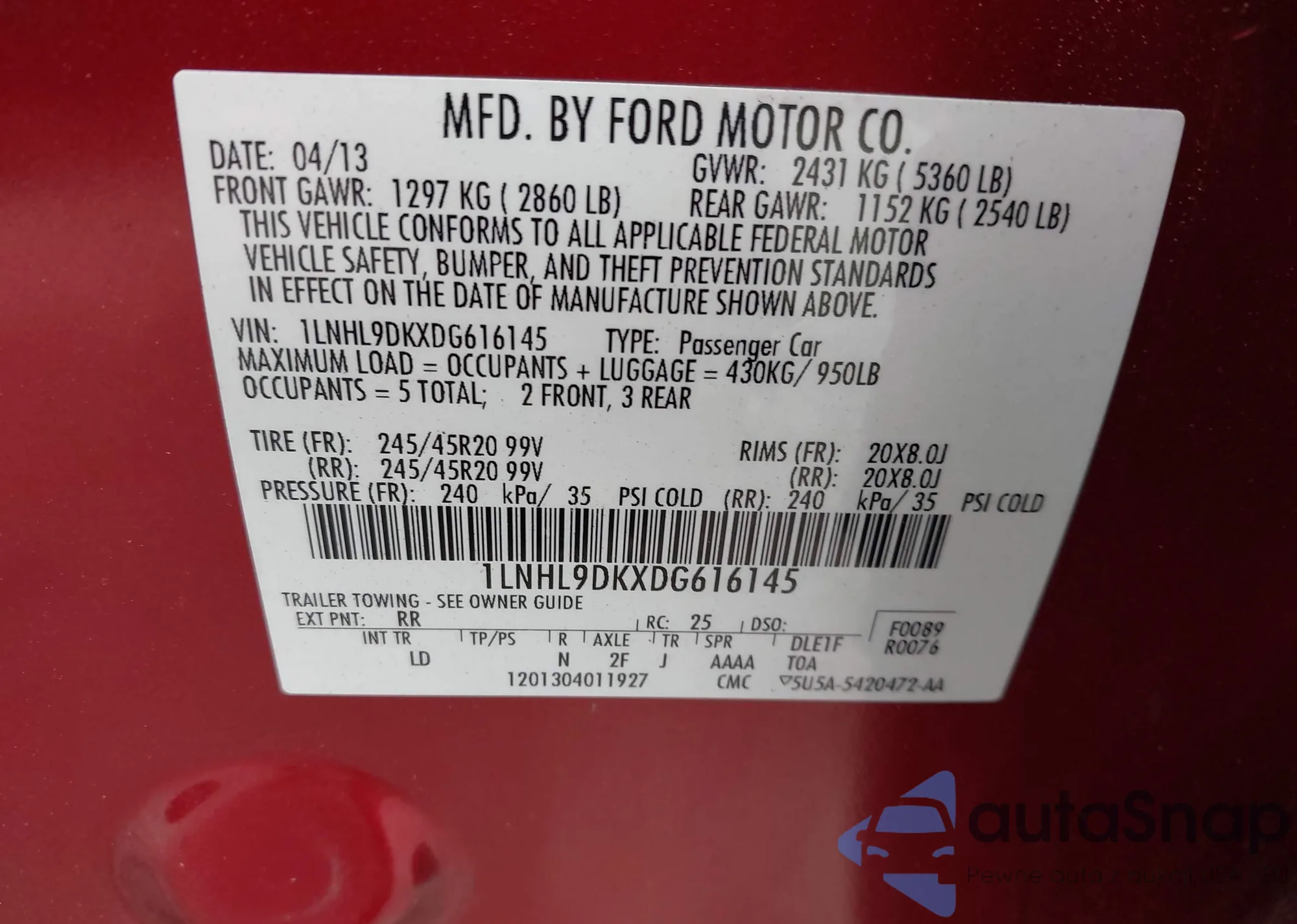 Samochód Lincoln MKS 2013 (VIN 1LNHL9DKXDG616145) sprzedaje go niezweryfikowany sprzedawca. Zalecamy raport Carfax i potwierdzenie możliwości rejestracji pojazdu przed zakupem.