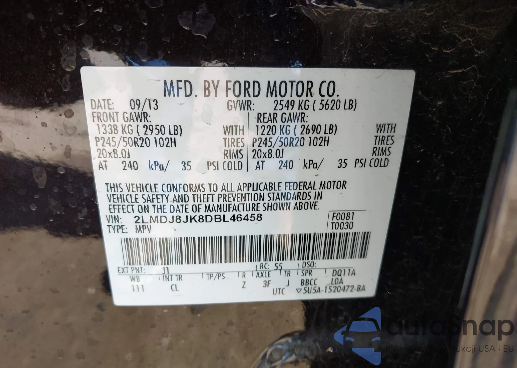VIN: 2LMDJ8JK8DBL46458