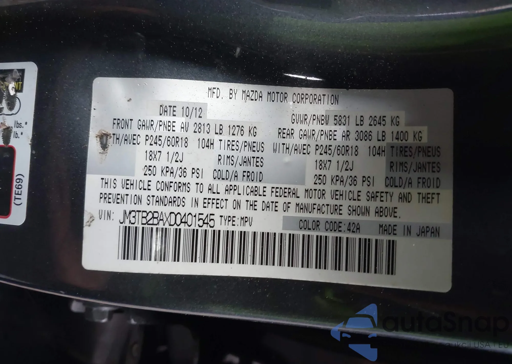 VIN: JM3TB2BAXD0401545