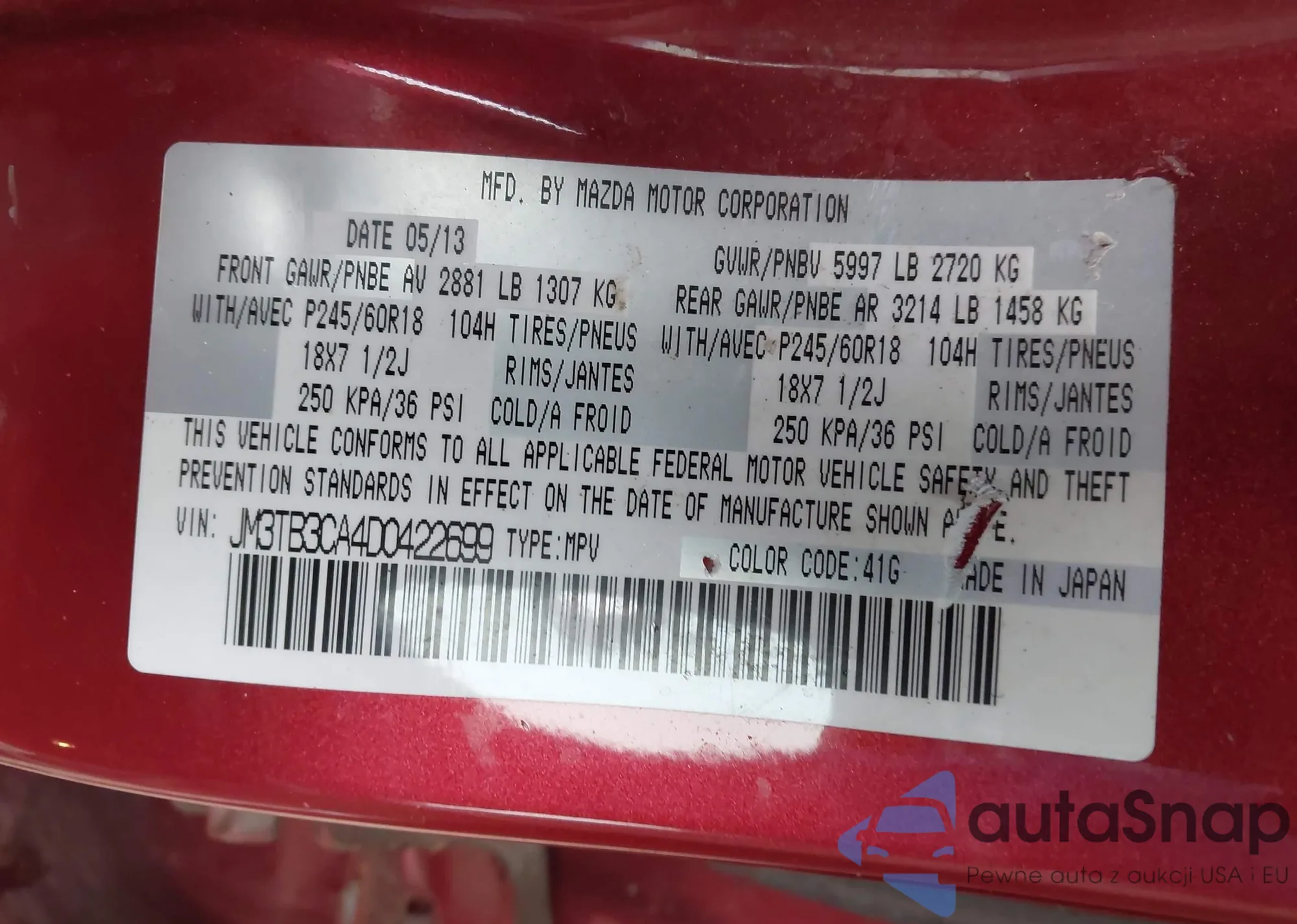 VIN: JM3TB3CA4D0422699