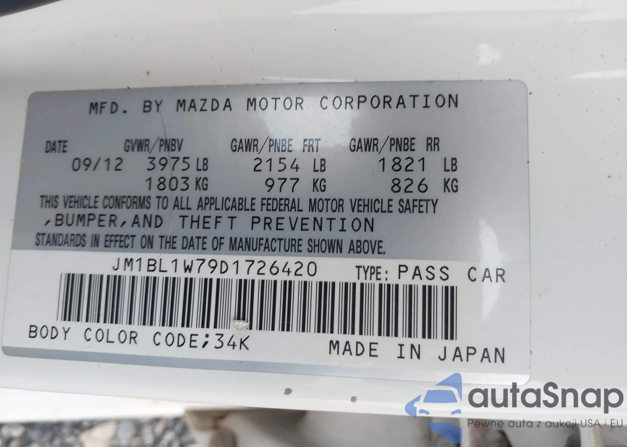 VIN: JM1BL1W79D1726420