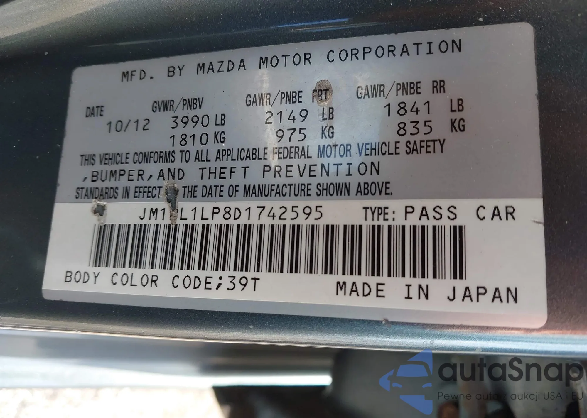VIN: JM1BL1LP8D1742595