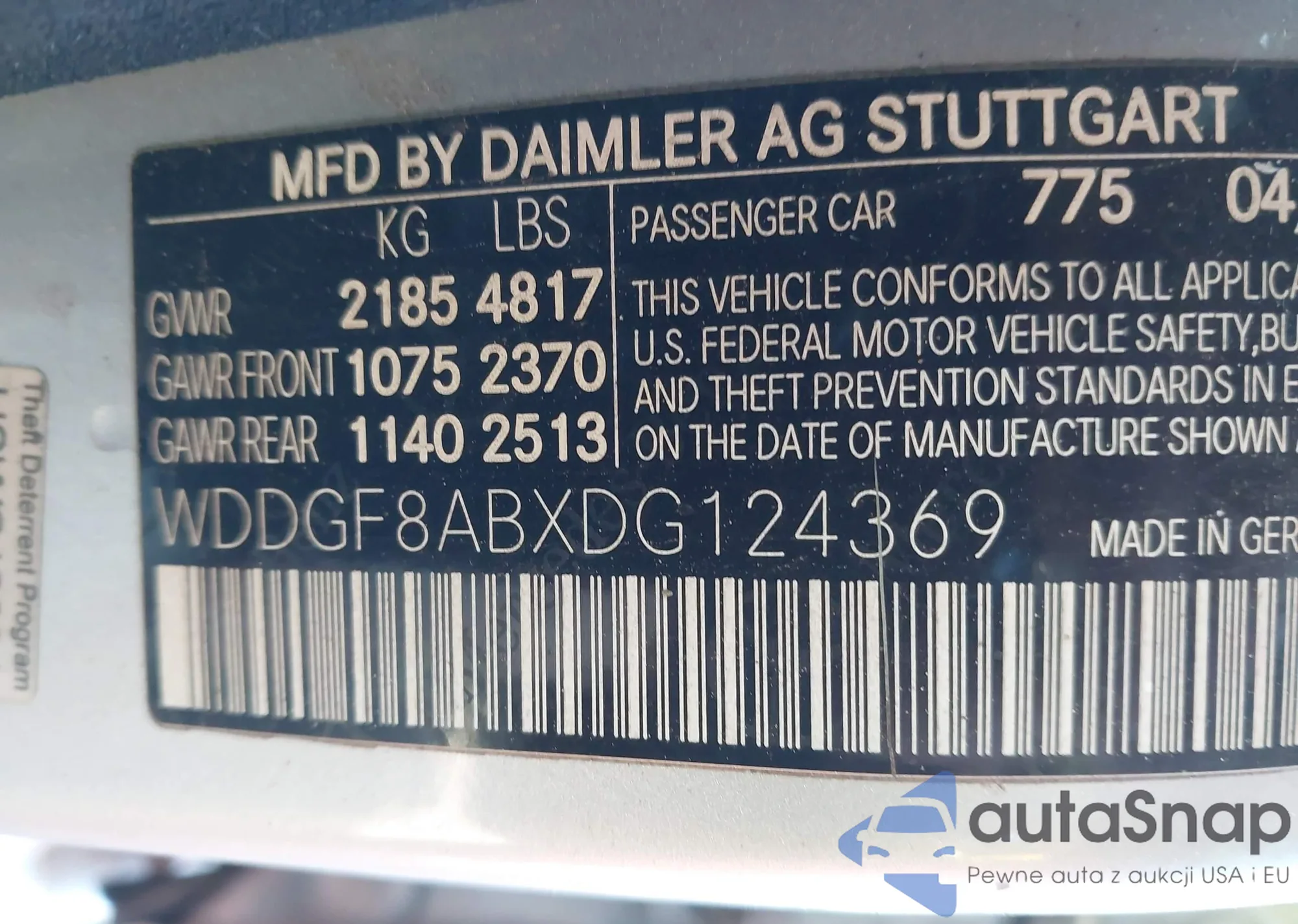 • VIN: WDDGF8ABXDG124369