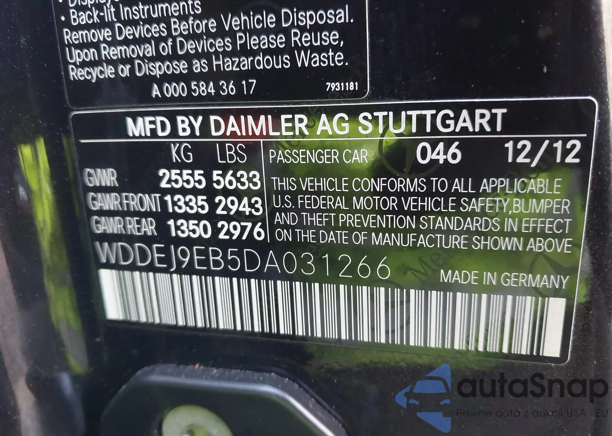 • VIN: WDDEJ9EB5DA031266