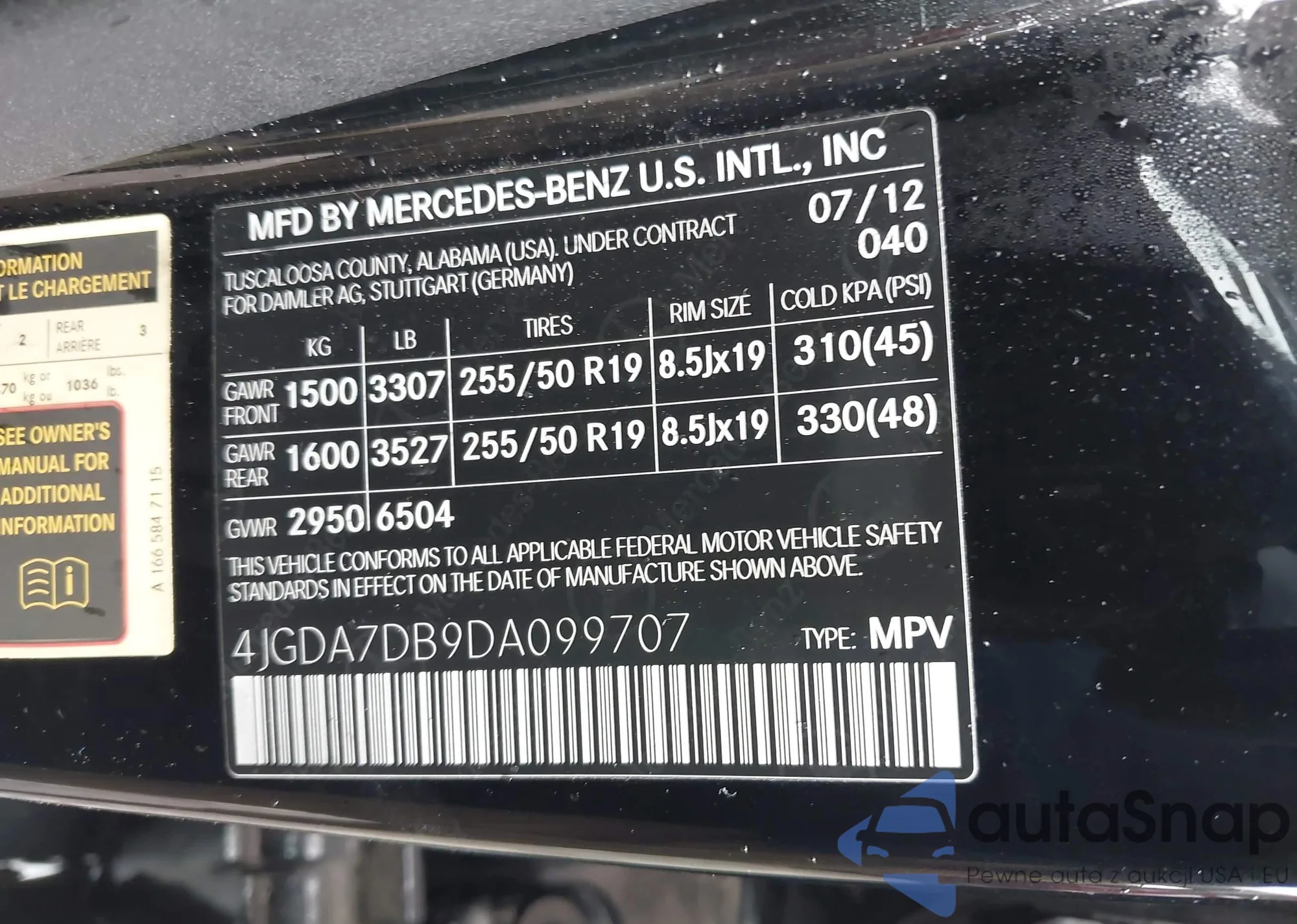 VIN: 4JGDA7DB9DA099707