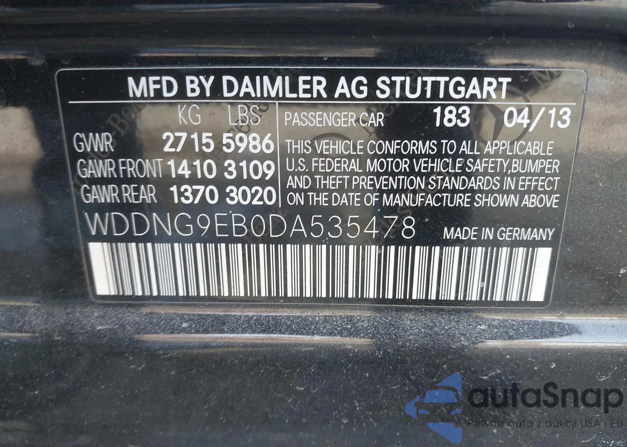 • VIN: WDDNG9EB0DA535478
