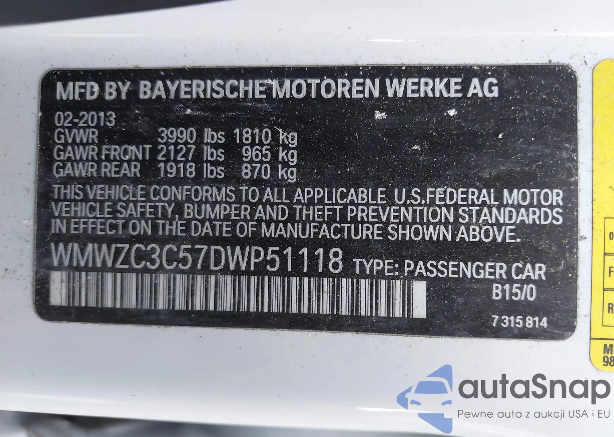 Samochód MINI Countryman 2013 (VIN WMWZC3C57DWP51118) ma dokumenty uniemożliwiające rejestrację. Mogą pojawić się trudności przy eksporcie i rejestracji. Skontaktuj się z ekspertami AutaSnap w celu znalezienia alternatywy.