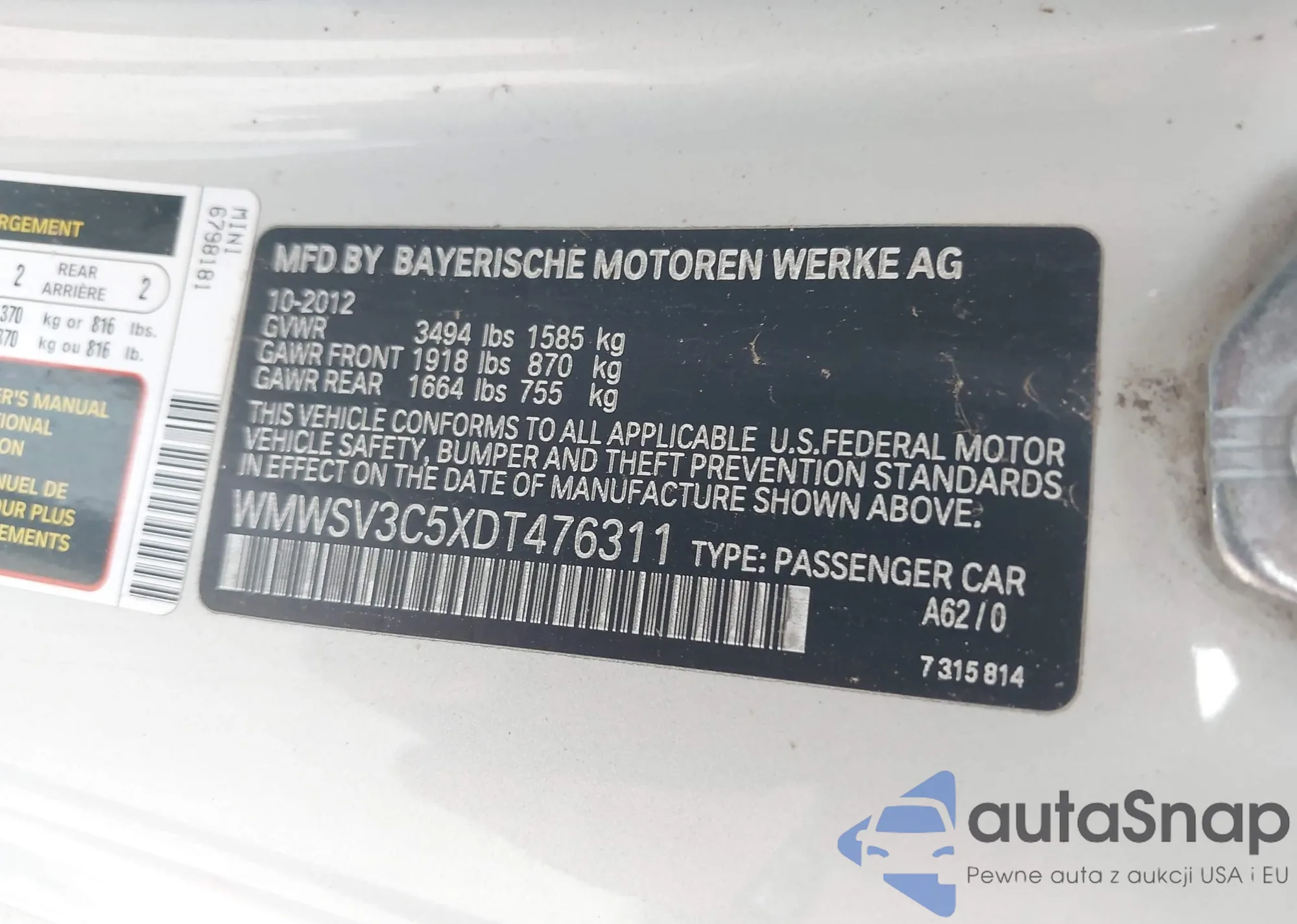 VIN: WMWSV3C5XDT476311