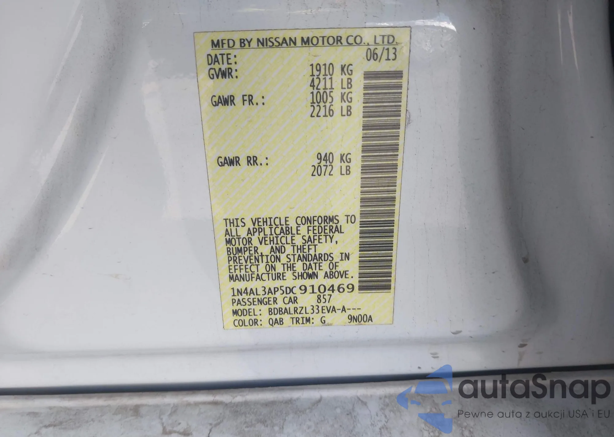 VIN: 1N4AL3AP5DC910469