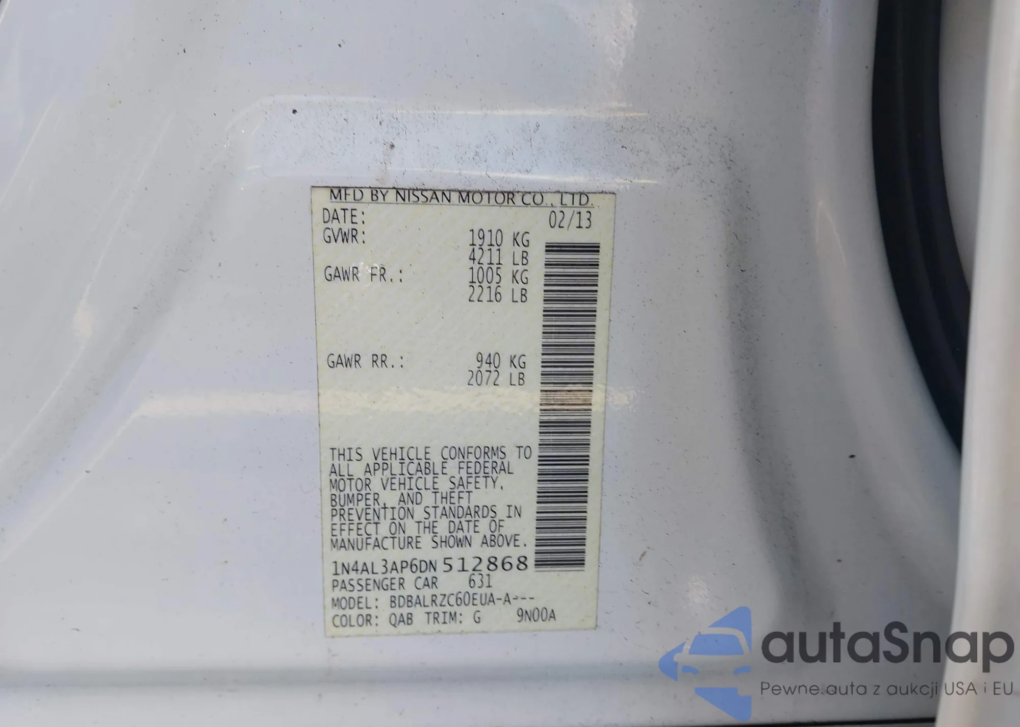 VIN: 1N4AL3AP6DN512868