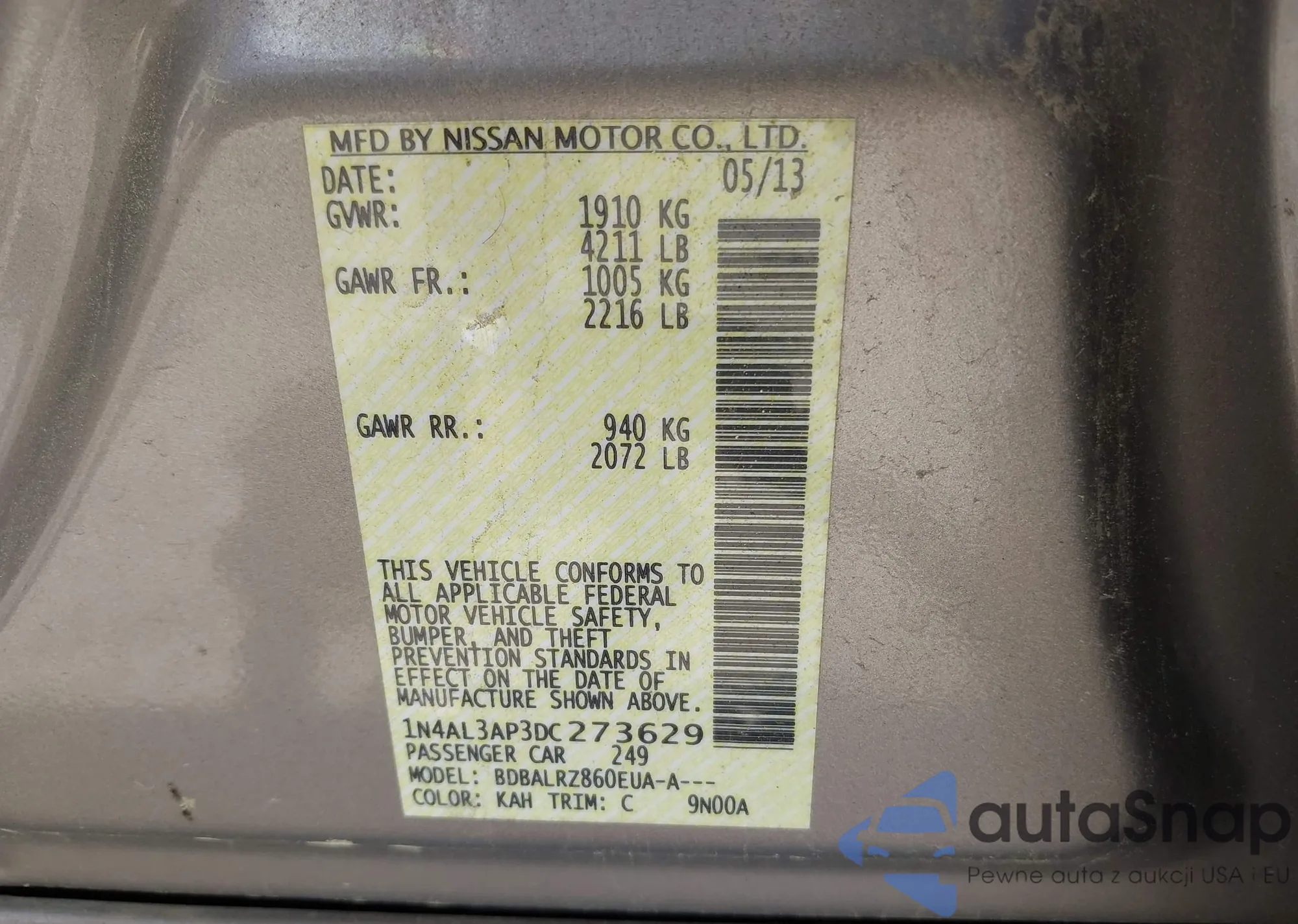 VIN: 1N4AL3AP3DC273629